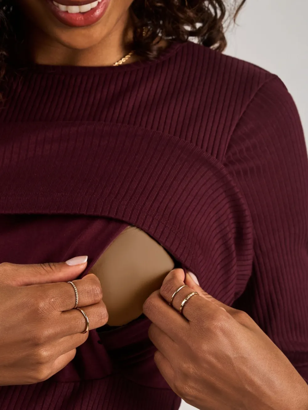 Mix your maternity wardrobe with easy, breezy styles that’ll look great all year round with our Ribbed Mini Maternity & Nursing Dress. Made of soft, ribbed jersey fabric, it’ll feel oh-so-comfy on you, and the mini dress length will flatter your changing body. It has a dual purpose, too; unfasten the underlayer for on-the-go breastfeeding. Transition the wine-red dress into your autumn and winter wardrobe with boots and tights, or team it with trainers and a denim jacket in the summer. Designed to fit throughout pregnancy Crew neckline Dual layer for easy breastfeeding access Jersey fabric Machine washable 95% Cotton, 5% Elastane.