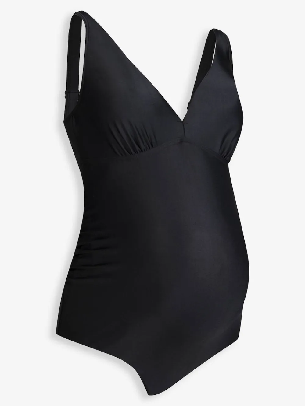 Tick off your holiday packing list with this classic Black Maternity Swimsuit. Timeless and versatile, it’s the perfect piece for sun-soaked beach days or relaxing by the pool. Designed with a flattering V-neckline and gentle support for your baby bump, it keeps you comfortable while giving you that holiday style that s sure to make you smile.• One-piece UPF 50+ swimsuit• Designed to fit throughout pregnancy• Adjustable straps• Ideal for the pool or the beach• Flattering V-neck design• Classic black finish – a holiday wardrobe essential• Machine washable• To prolong the life of your maternity swimwear, we recommend always rinsing it immediately after use Machine washable. 80% Nylon, 20% Elastane.