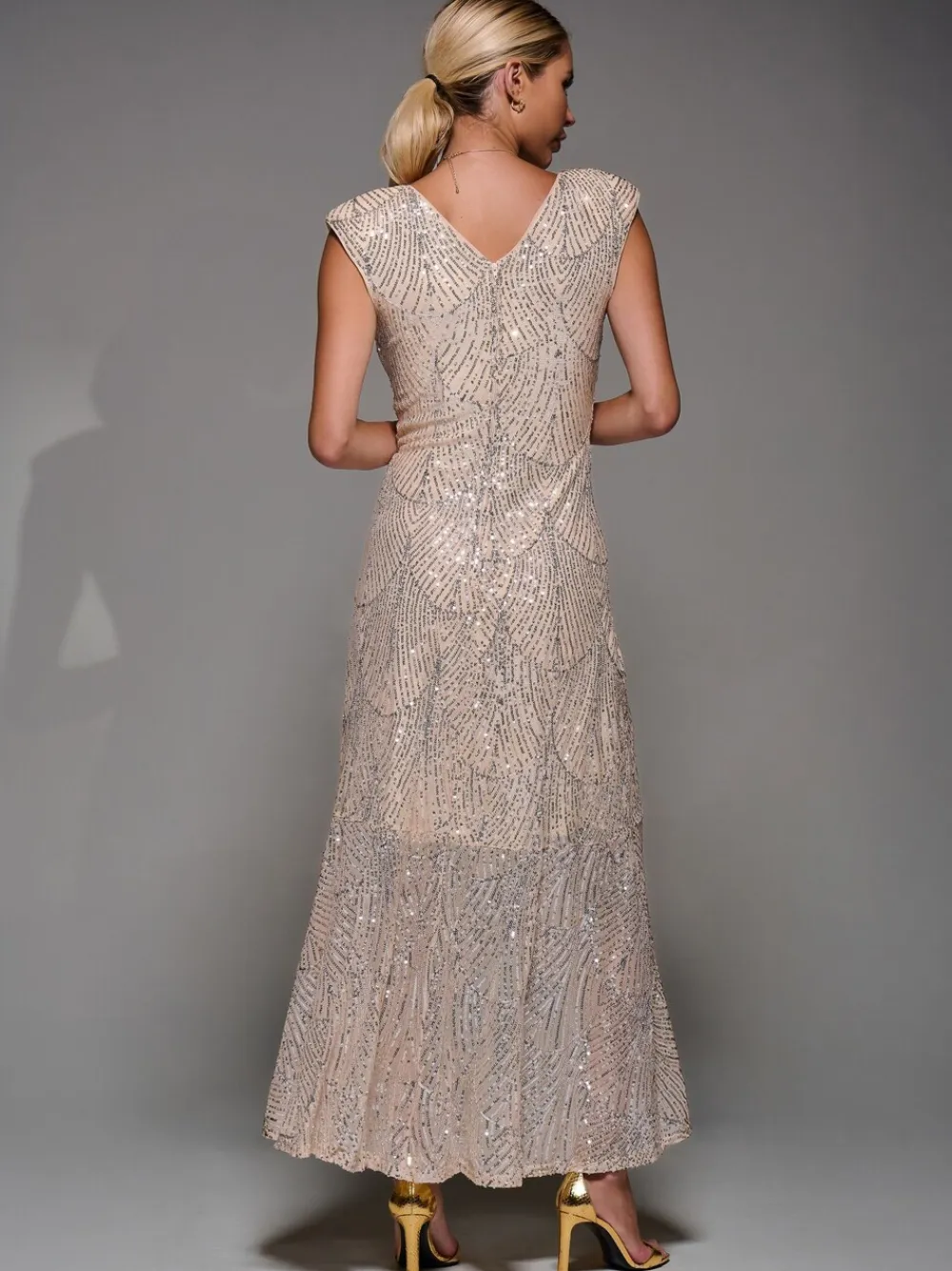 Be the first to review “Jolie Moi Nude Sequin Asymmetric Ruffle Hem Maxi Dress Online” Cancel reply