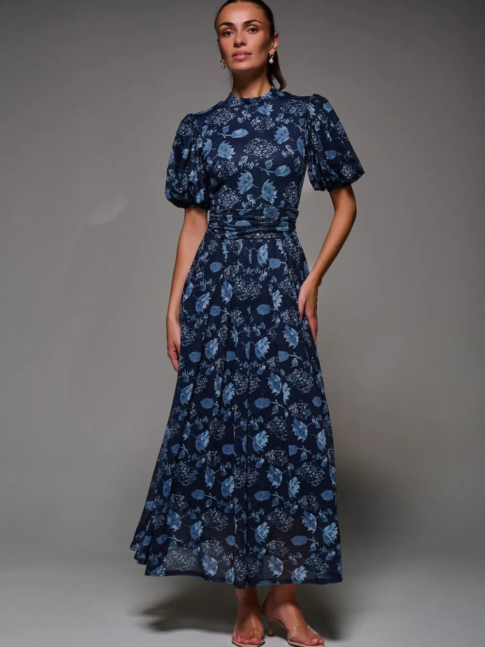 Be the first to review “Jolie Moi Puffy Sleeve Printed Mesh Maxi Dress Blue Online” Cancel reply