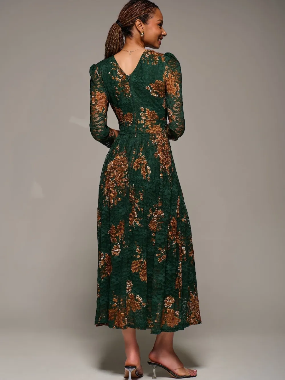 Jolie Moi Three Quarter Sleeve Printed Lace Maxi Dress Green New