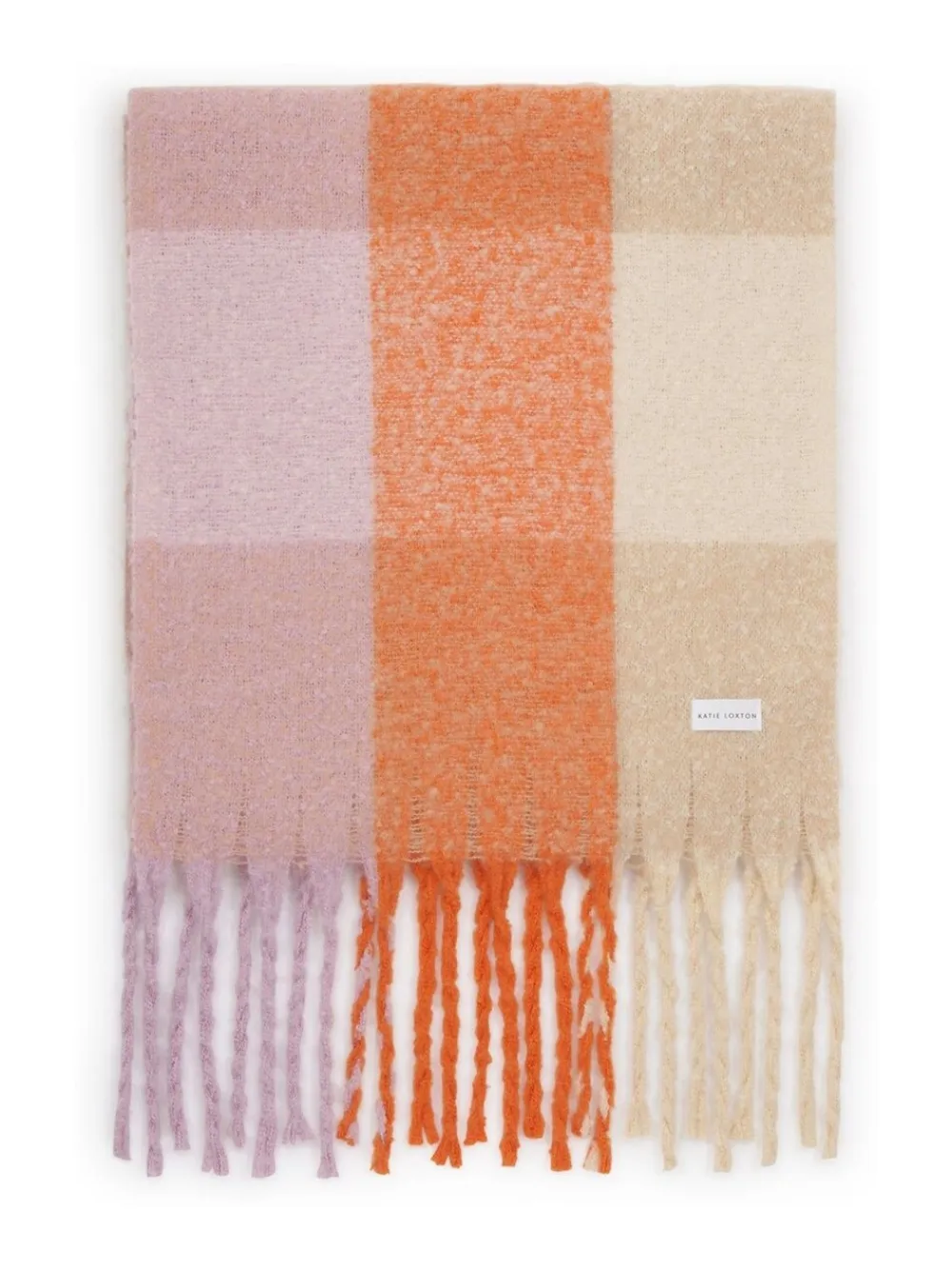 This Checked Tassel Scarf from Katie Loxton is made from super-soft brushed material, making it perfect for styling through the seasons. Featuring an array of timeless colourways, playful fringe-edge detailing, and a canvas logo label, it s sure to become a staple accessory you ll reach for time and time again. Wipe clean only. 100% Polyester.