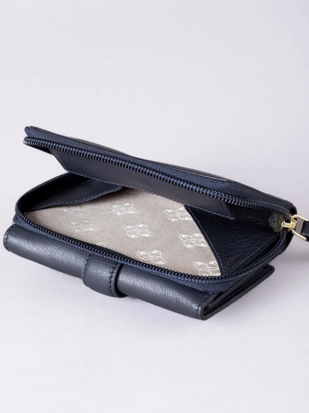 Crafted from soft textured leather, this durable blue purse from Lakeland Leather is designed to last for years to come. With plenty of space for your spending essentials, this practical purse will keep you organised in sophisticated style. Height 10cm Width 13.5cm Depth 4cm 100% Leather.