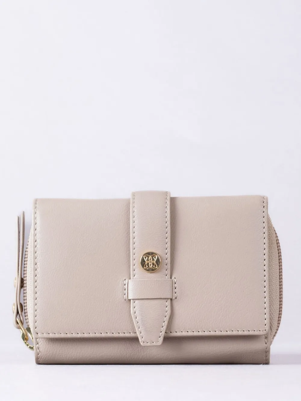 Lakeland Leather Natural Medium Icon Stud Tab Purse Outlet
