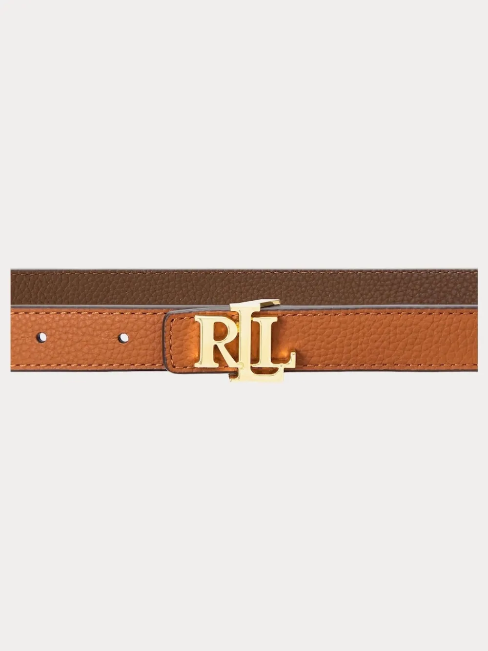 Lauren Ralph Lauren 1.9cm Skinny Logo Reversible Pebbled Leather Belt Lauren Tan/Dark Brown Hot