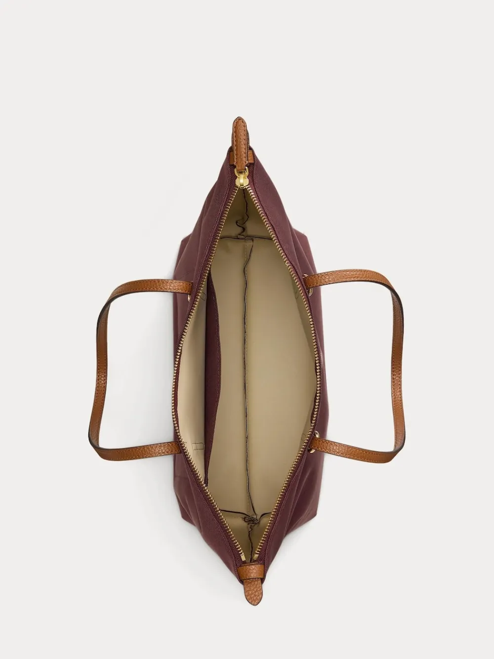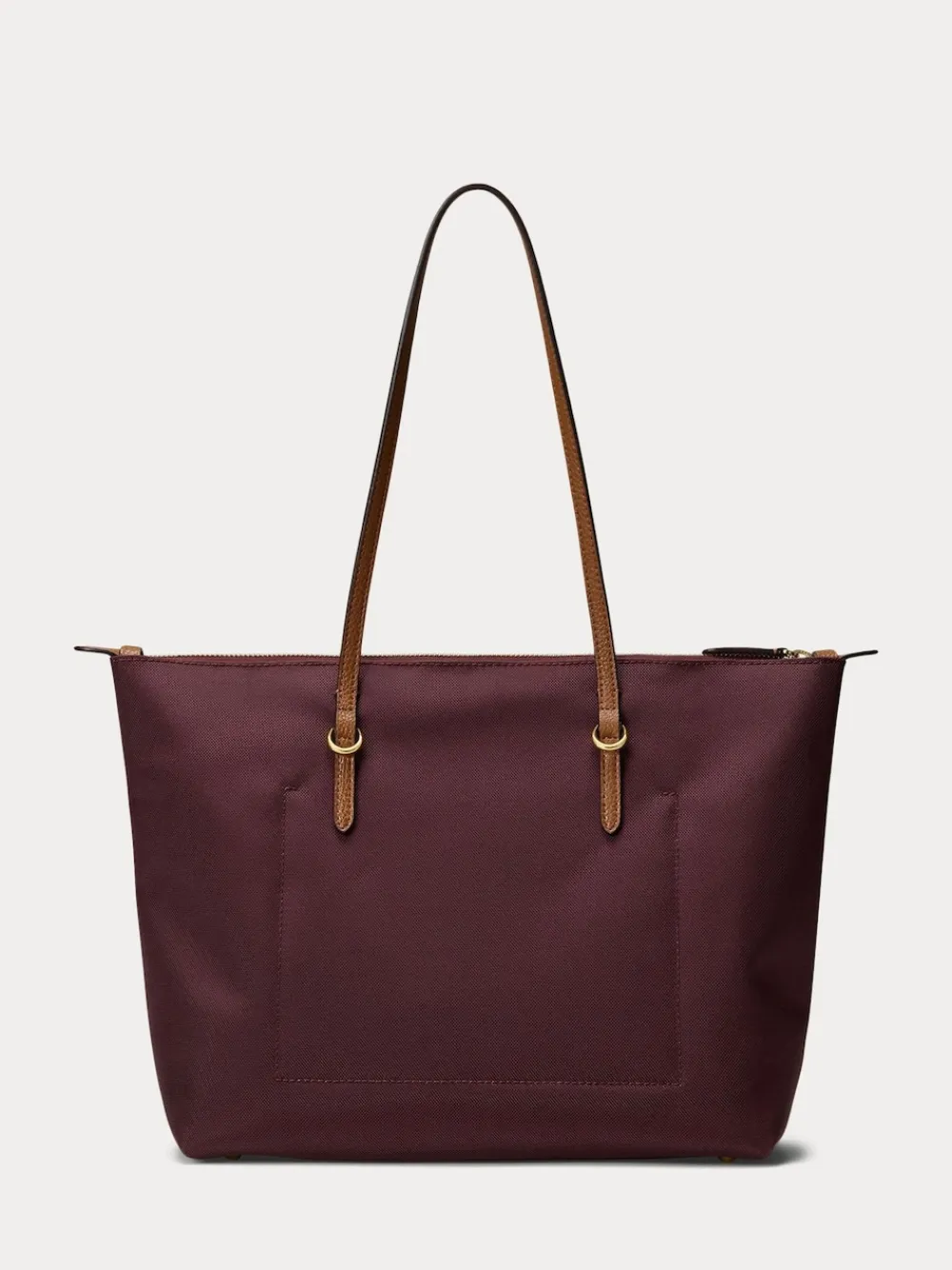 Crafted with durable nylon and designed with sumptuous faux-leather straps, the medium Keaton tote features a spacious silhouette, perfect for carrying the day’s essentials. A versatile must-have, it’s finished with an “LRL” metal logo at the front for signature style. Height 26.5cm Width 38cm Depth 14cm Main 100% Nylon. Trim 100% PU.