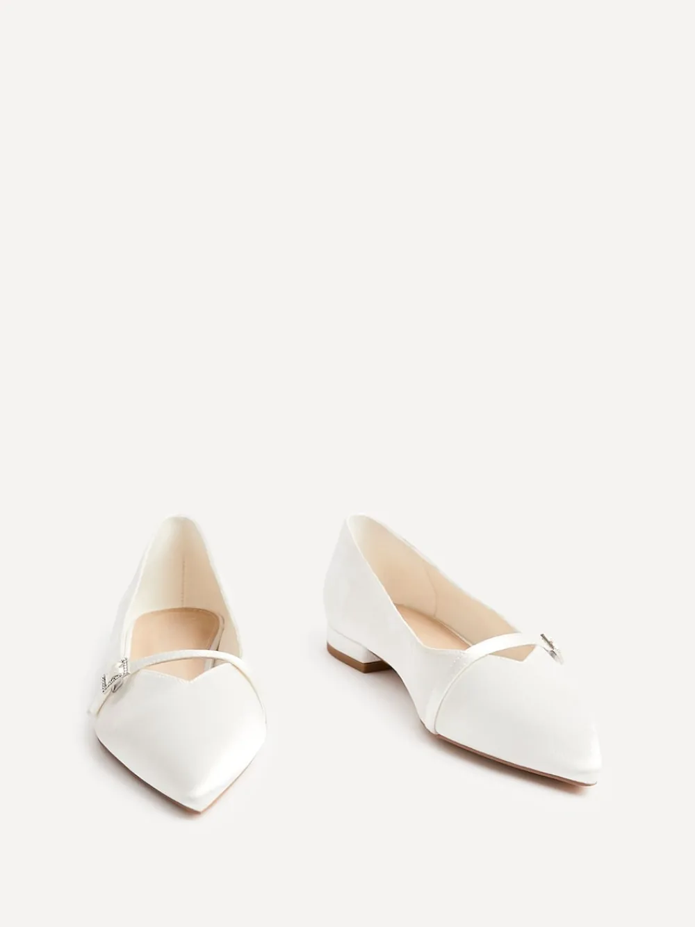 Our Engaged bridal ballet flats combine elegance and comfort, making them the perfect choice for your special day. Featuring a pointed toe and a chic front buckle strap detail. Designed with a cushioned insole and a subtle 1.5 cm block heel. Ideal for brides that seek a comfortable alternative to heels. Main – 100% Other fibres. Lining – 100% Other fibres. Sock – 100% Other fibres.