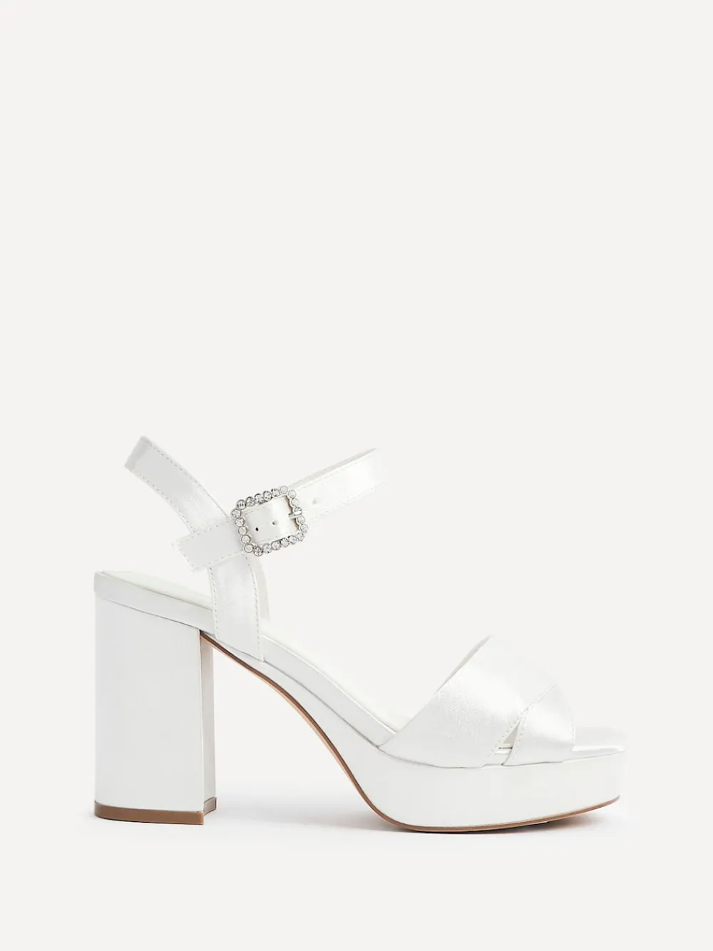 Elevate your bridal style with the Perola platform block heels. These stunning shoes offer both fashion and comfort, making them the perfect choice for your special day. Heel height 9cm. Upper – Textile, Lining & Sock – Textile, Sole – Other Materials.