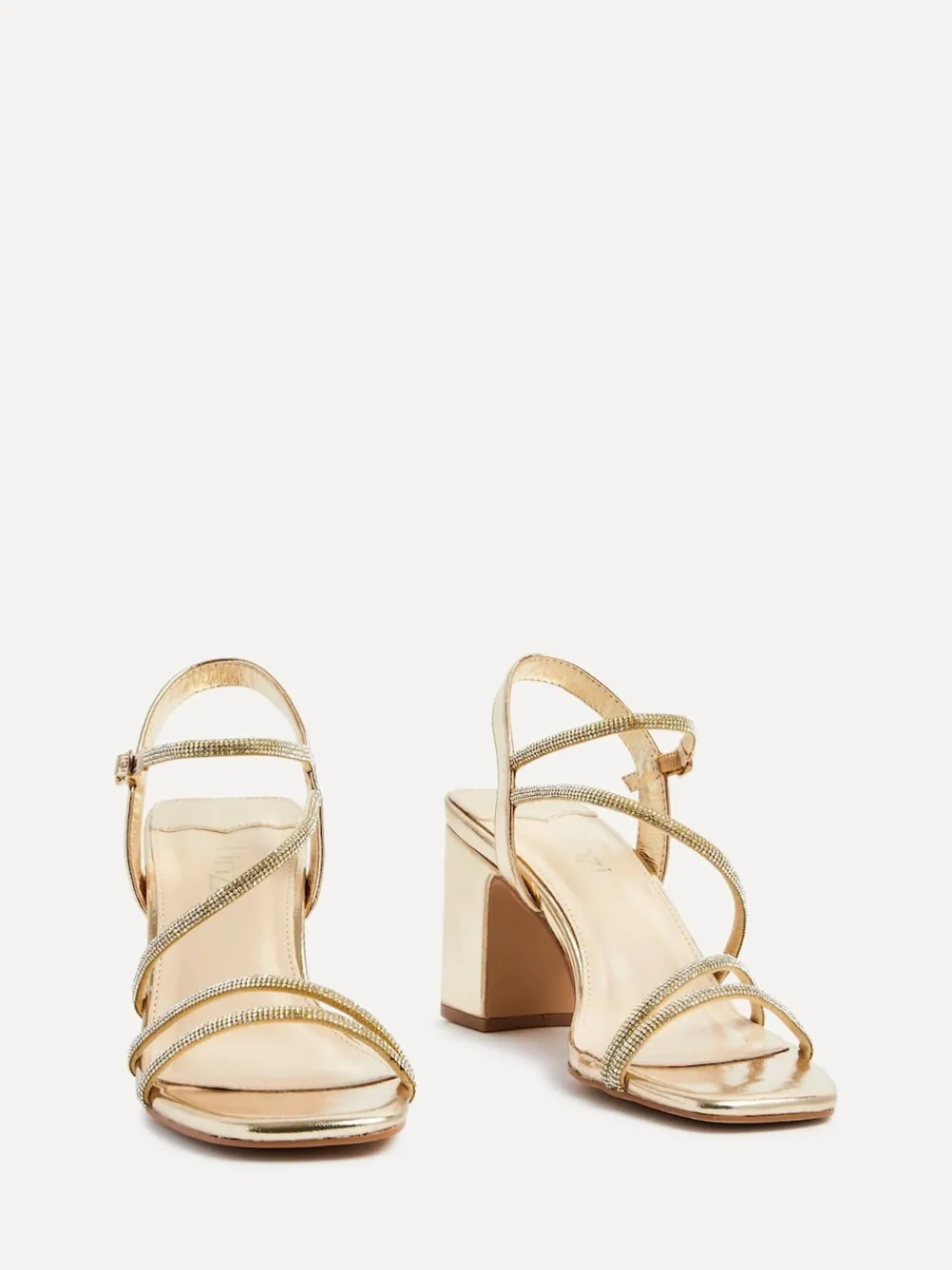 The perfect heels to add some sparkle to your step. Our gold Kira Block Heels feature a strappy diamante design, block heels and soft cushioned insock ensuring total style and comfort. Heel height 7.5cm. Upper – Other Materials, Lining & Sock – Other Materials, Sole – Other Materials.