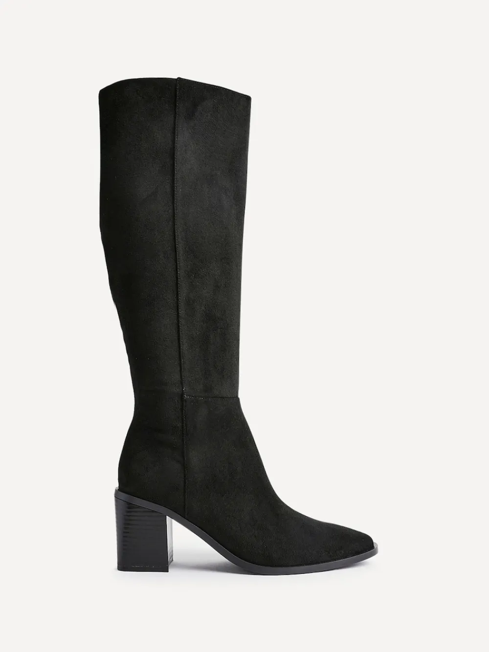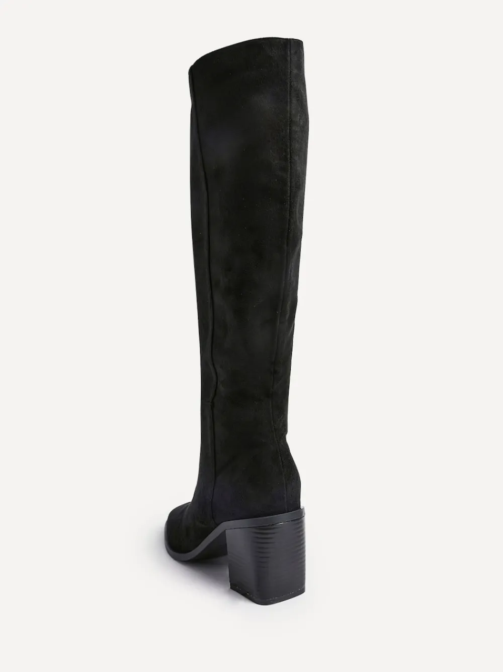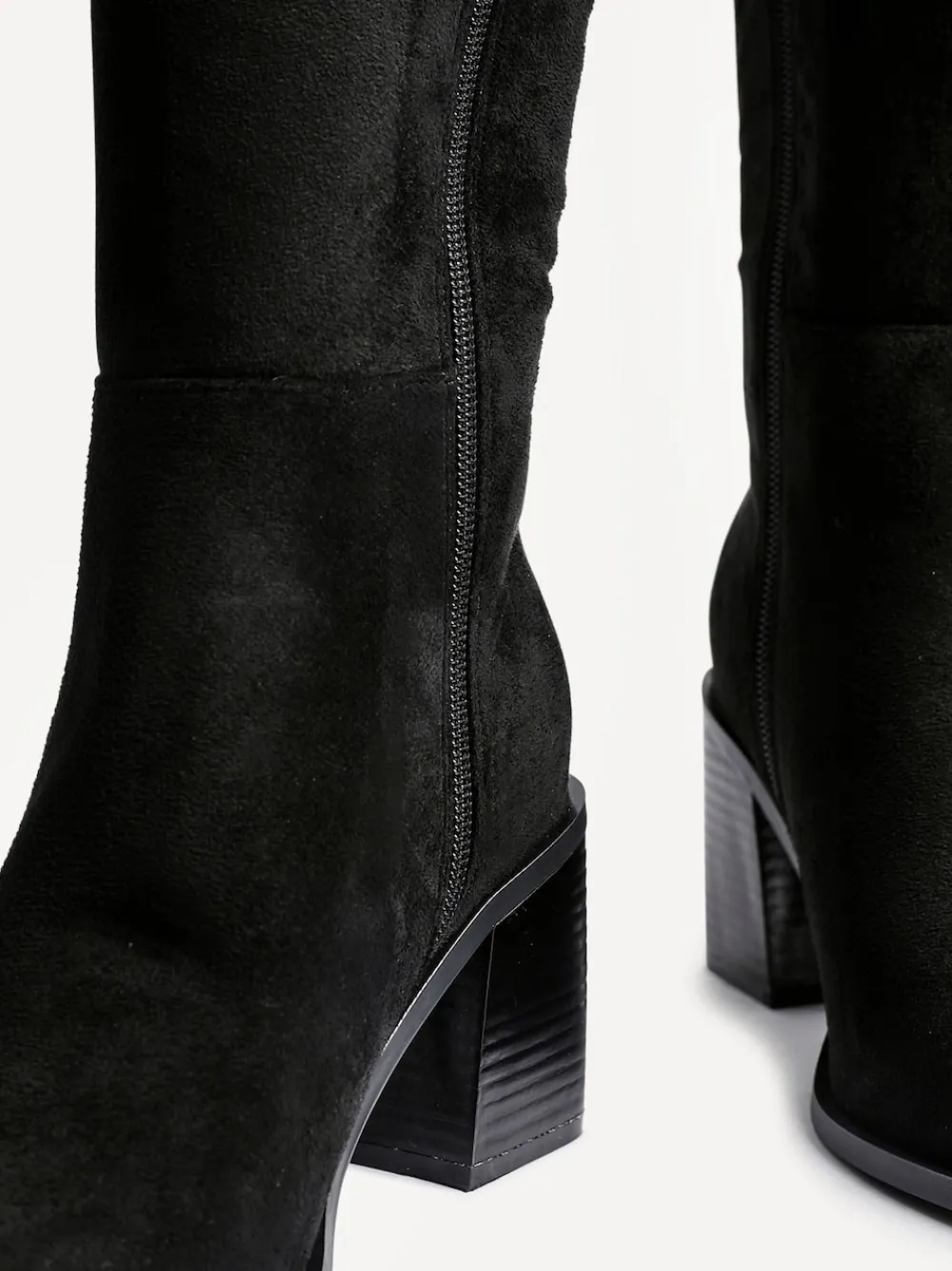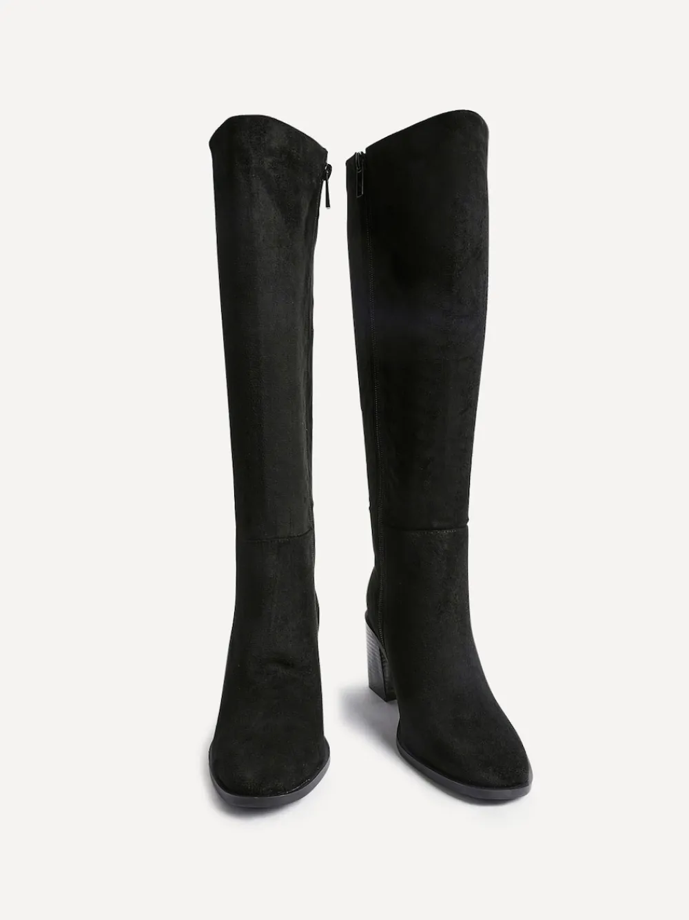 Our Levine high leg boots are chic and effortlessly wearable. Crafted from high-quality faux suede for a smooth, premium finish. Made with a stacked block heel for comfortable lift and a full-length inside zip for easy wear, they’re finished with a soft faux fur lining and cushioned inner sock – perfect for keeping you warm and supported all day. Style with dresses, skirts or over skinny jeans for a timeless look.Boot length: 38cm Heel height 7cm. Upper – 100% Other fibres, Lining. and Sock – 100% Other fibres. Sole – 100% Rubber.