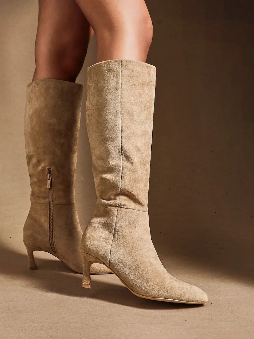 Linzi Rush Pointed Toe High Leg Stiletto Boots Nude Clearance