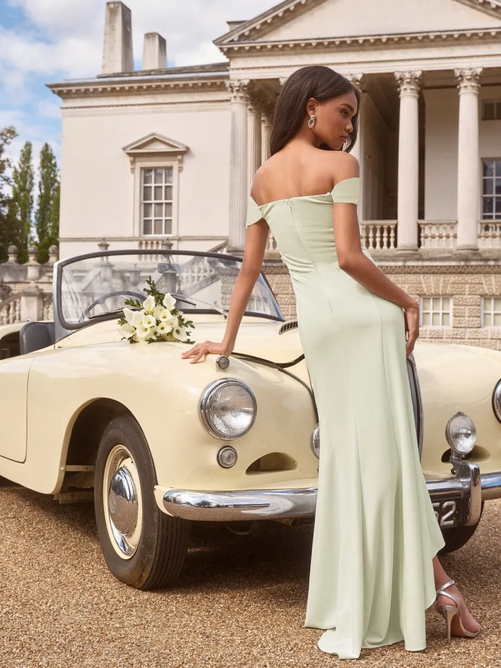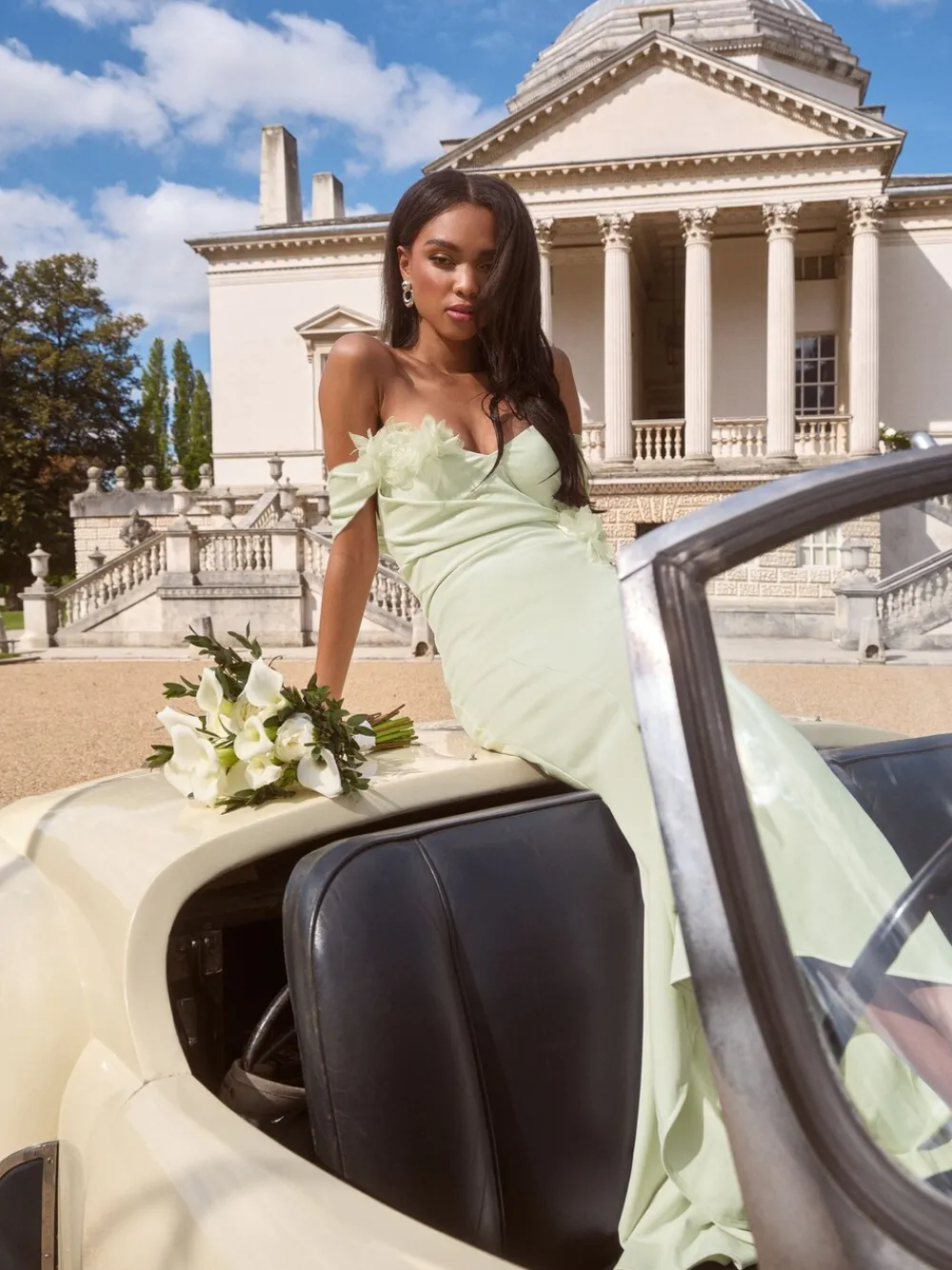 Lipsy Bardot 3D Floral Trim Bridesmaid Dress Sage Green Online