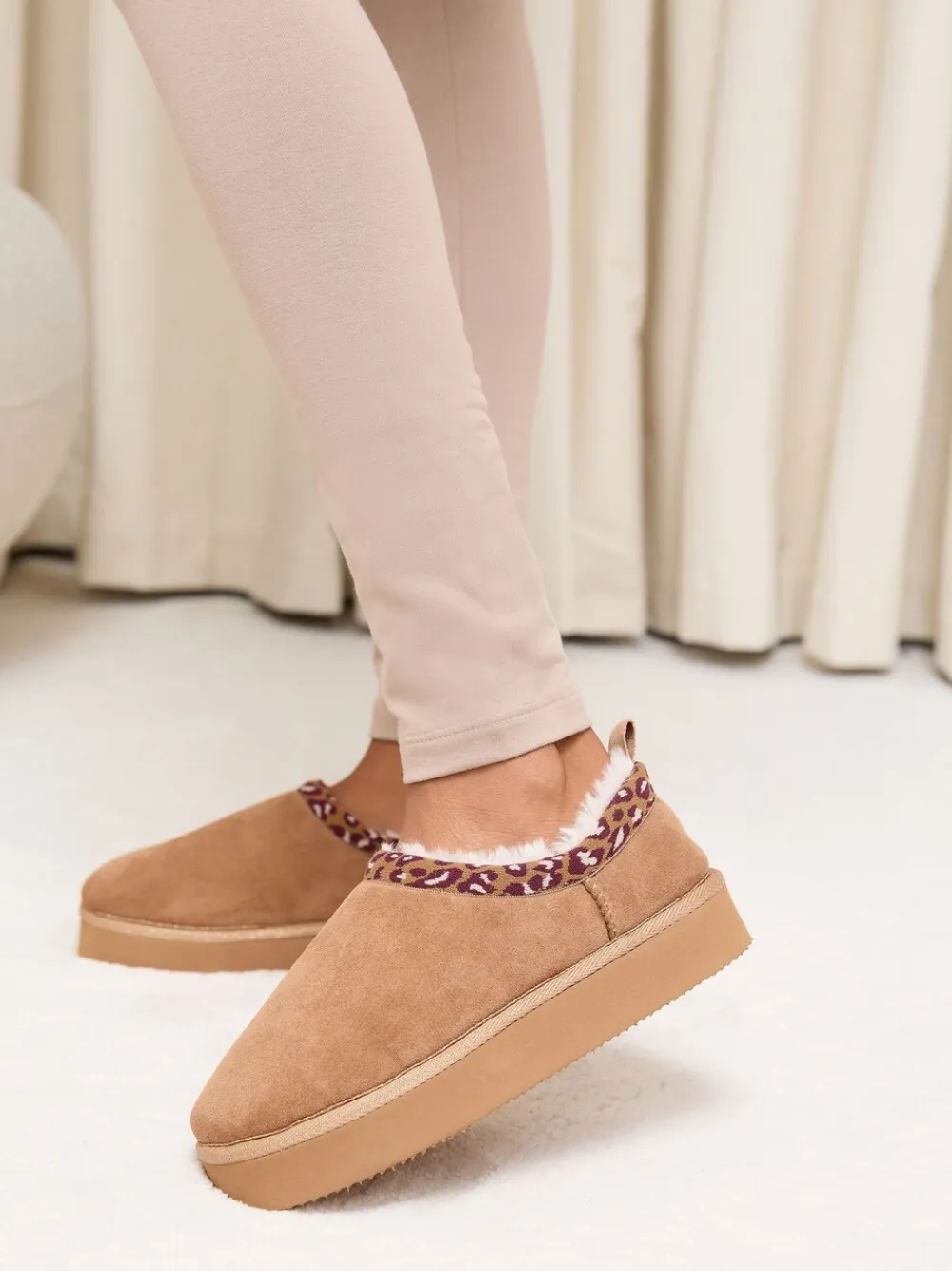 Perfect for lounging around at home, these cosy Lipsy slipper boots feature a comfortable platform sole and luxurious faux suede upper. They are designed for ultimate warmth with a fluffy faux fur lining and finished with a stylish leopard print collar edge. Faux suede upper Fluffy faux fur lining Comfortable platform sole Perfect for lounging around at home Cosy Luxurious Upper – Textile, Lining & Sock – Textile, Sole – Other Materials.