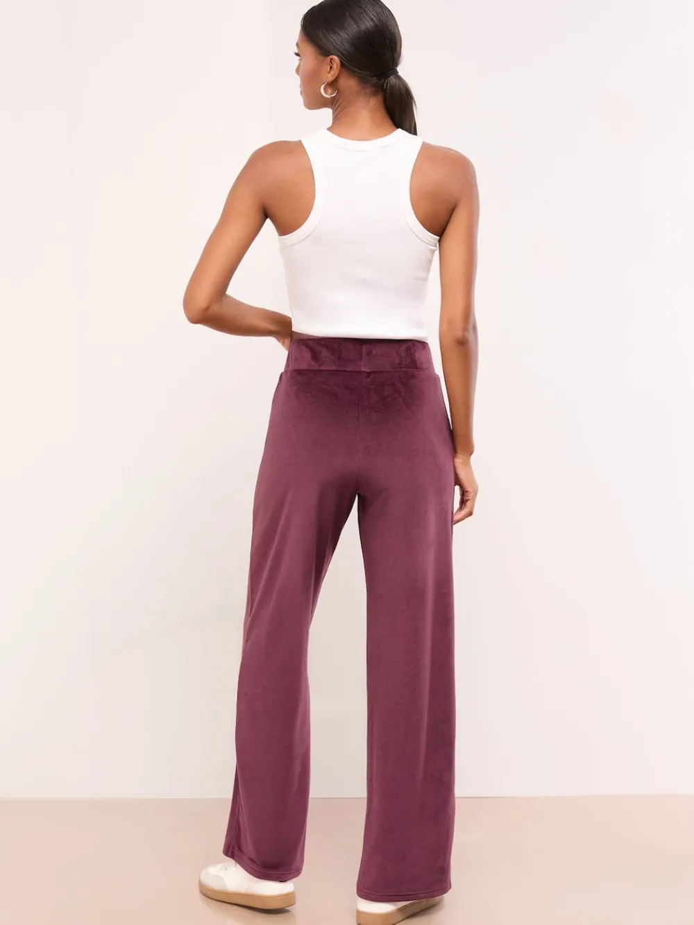 Lipsy Embroidered Velour Relaxed Wide Leg Joggers Plum Purple Online