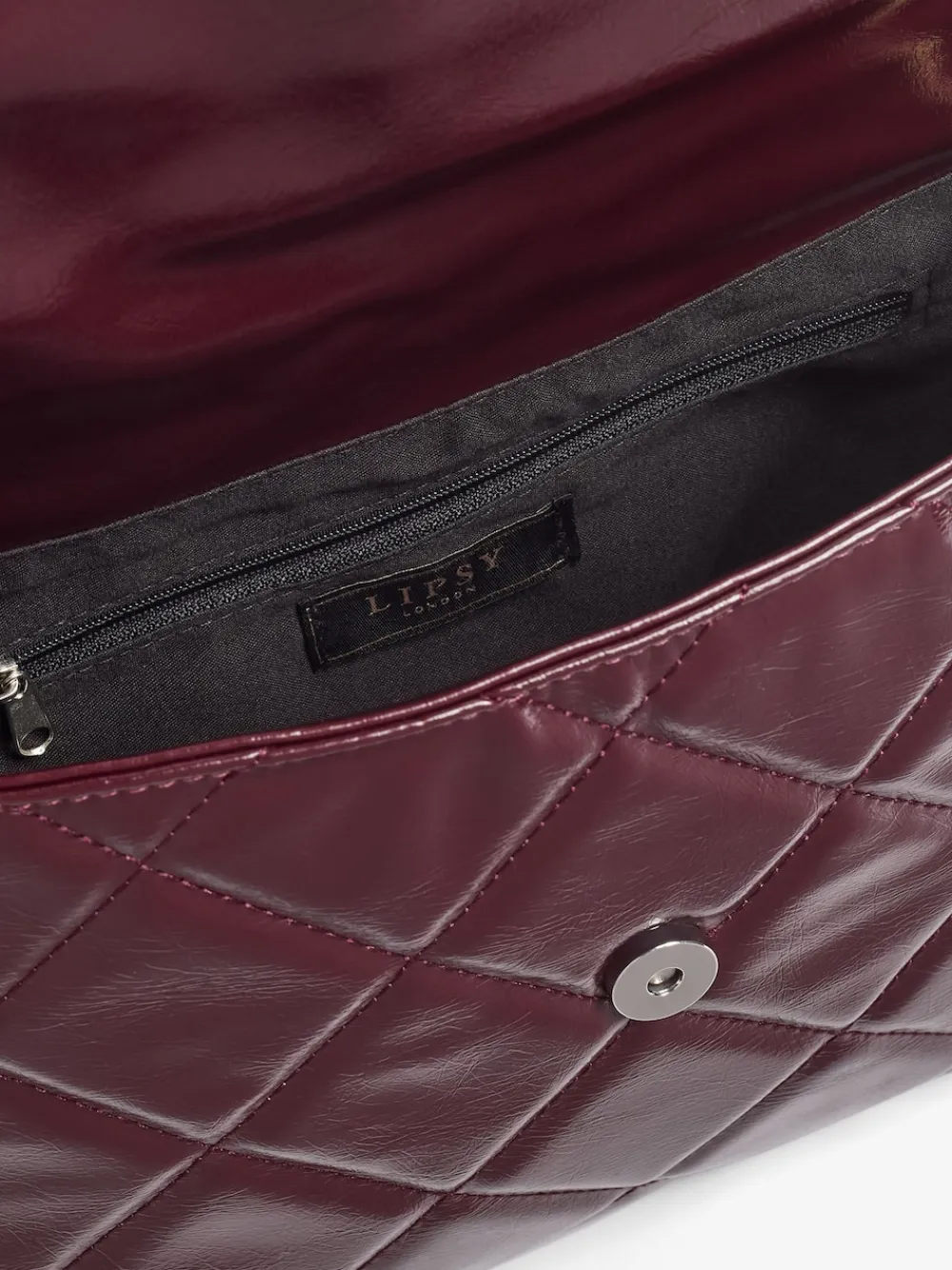 Lipsy Quilted Chain Shoulder Bag Burgundy Red Best