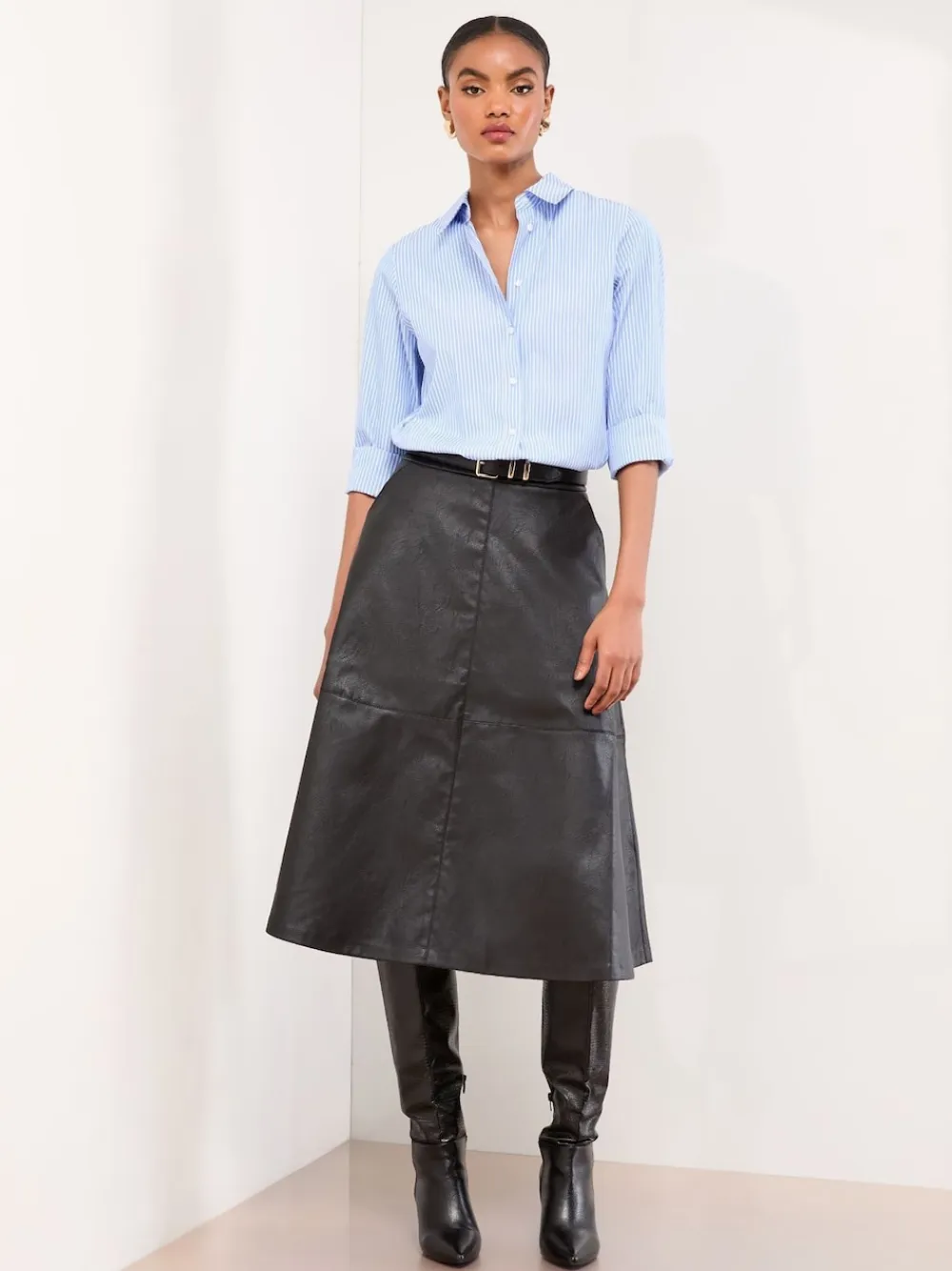 Command attention in this sophisticated Lipsy midi skirt. The faux leather fabric features a subtle textured finish, while the fit and flared full hem creates an elegant silhouette. Practical side seam pockets and a secure back zip fastening complete this chic look. Faux leather Textured finish Back zip fastening Side seam pockets Full hem fit and flared fit Backing 95% Polyester, 4% Cotton, 1% Viscose. Face 100% PU.