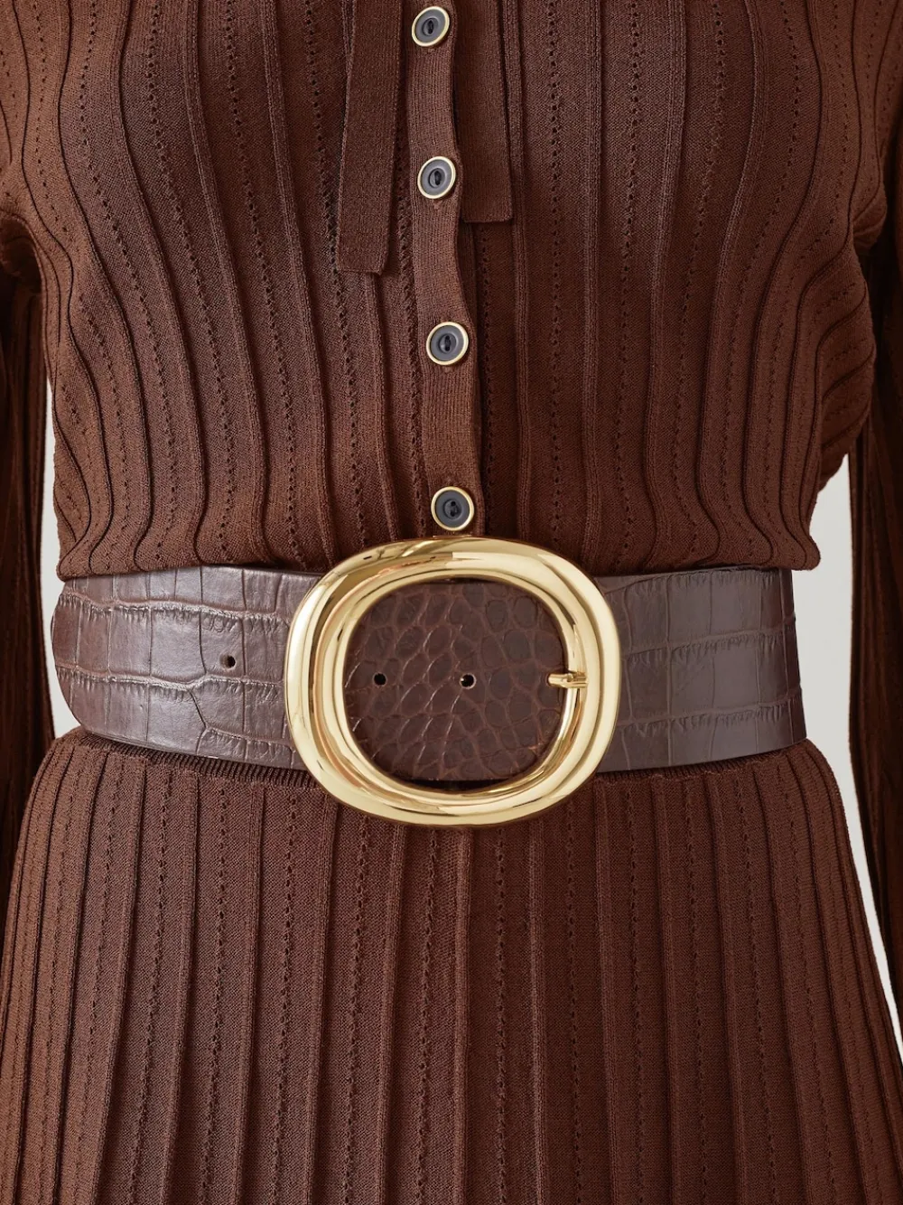 The Bromley belt is crafted in Italy from brown croc-effect leather. It’s a classic width finished with a large, oval polished-gold buckle. 100% Leather.