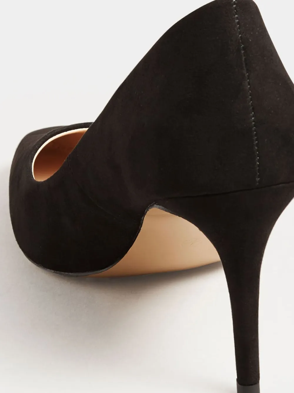 Fit Fashion Notes: These LTS court heels are the perfect way to add elegance to any look. Created with a closed pointed toe and finished in a faux suede. Pair with smart trousers and a blouse for the perfect desk to date look. Features: Slip-on style, Pointed closed toe, Faux suede finish, Comfort sole, Heel height from approx: 8.3cm/3.2, Standard fitModel is and size. Main – 100% Textile. Sole – 100% Synthetic rubber.