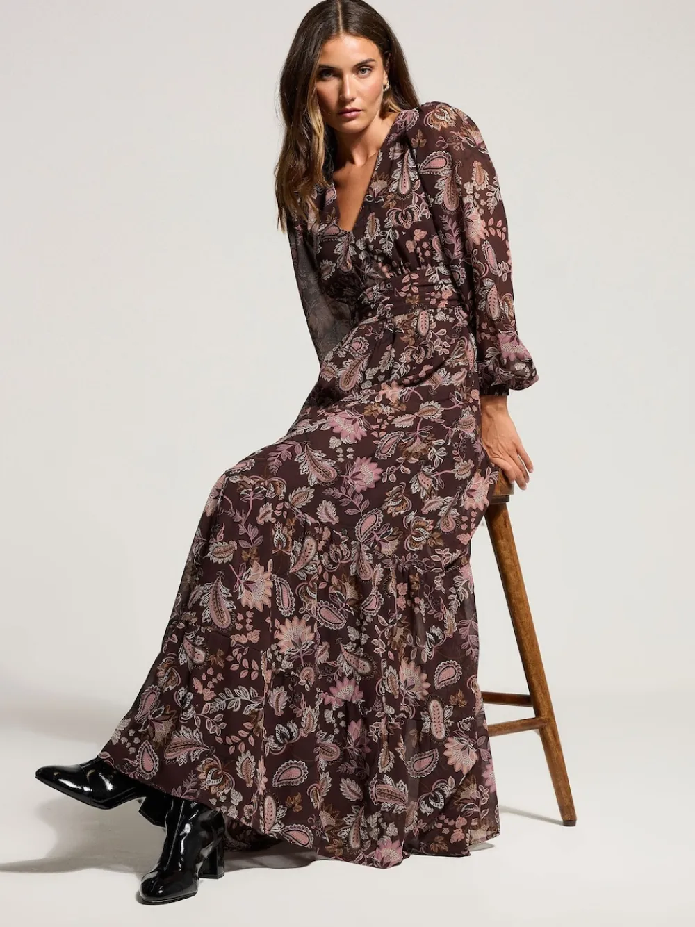 Long Tall Sally Brown Paisley Georgette Maxi Dress Sale