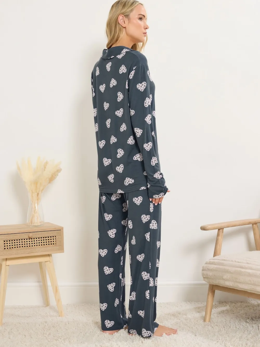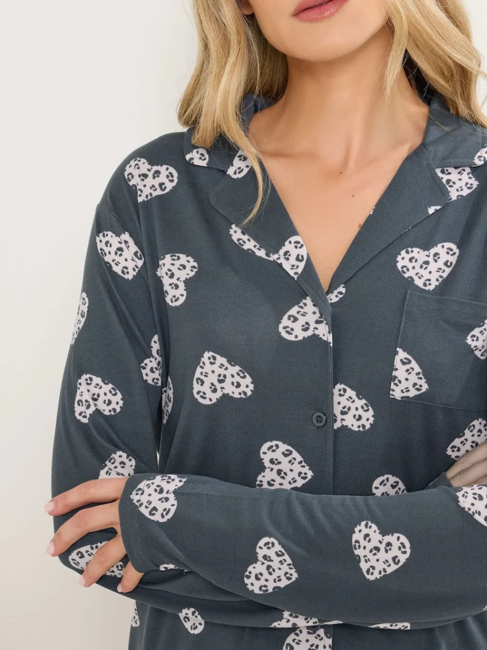 Long Tall Sally Grey Soft Touch Animal Heart Pyjamas Set Sale