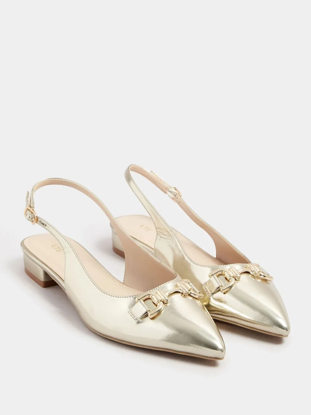 Long Tall Sally Metal Trim Sling Back Shoes Gold Clearance