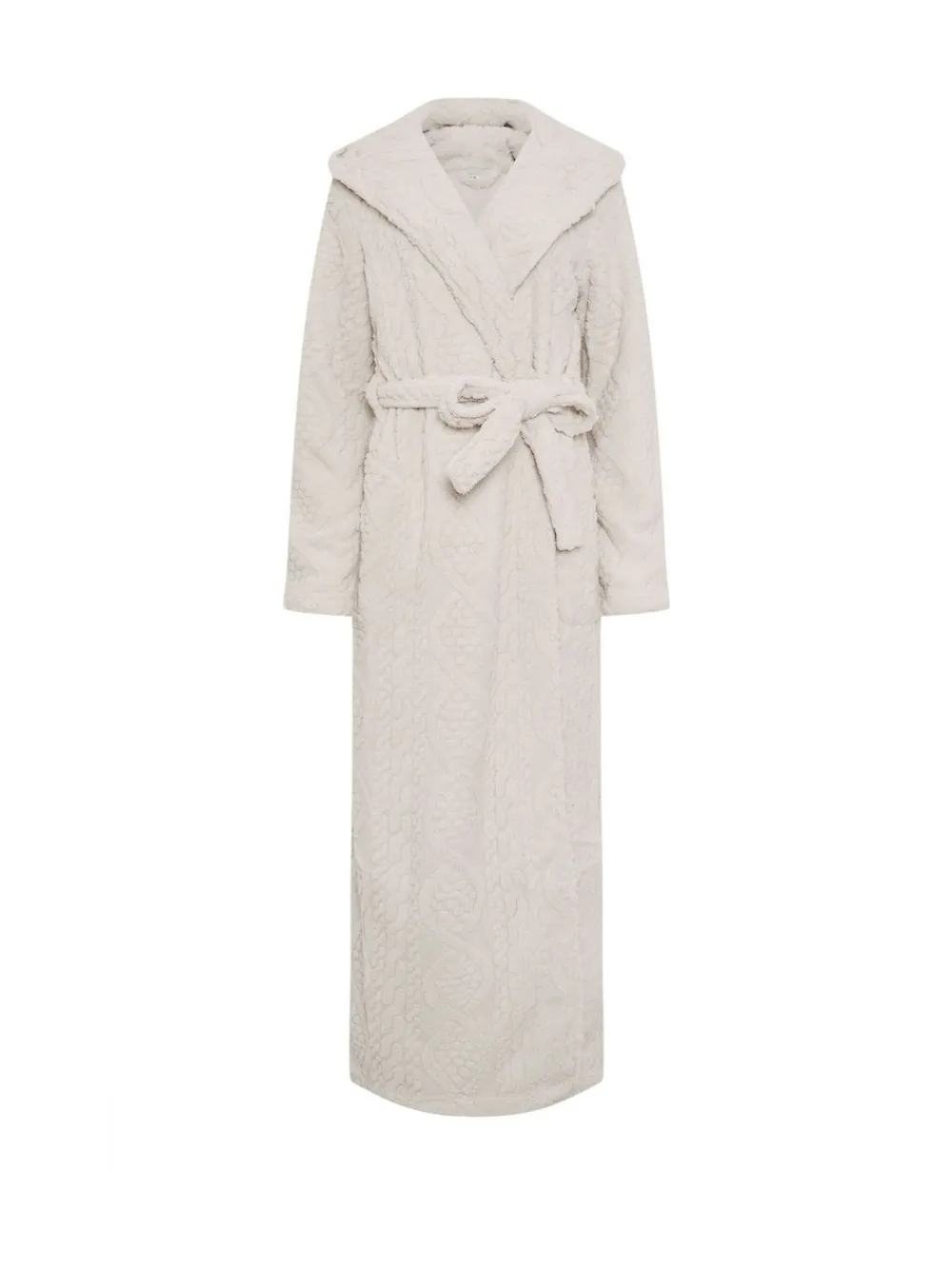 Fit & Fashion Notes: Stay comfy and stylish with this cable dressing gown. Made from a soft-touch fabric, it features long sleeves, a hooded design and a belt fastening. Layer over your best pyjamas for the ultimate night in look! Features: Maxi length Cable design Belt tie Hooded Made from a soft-touch fabric Polyester Machine washable Machine washable. 100% Polyester.