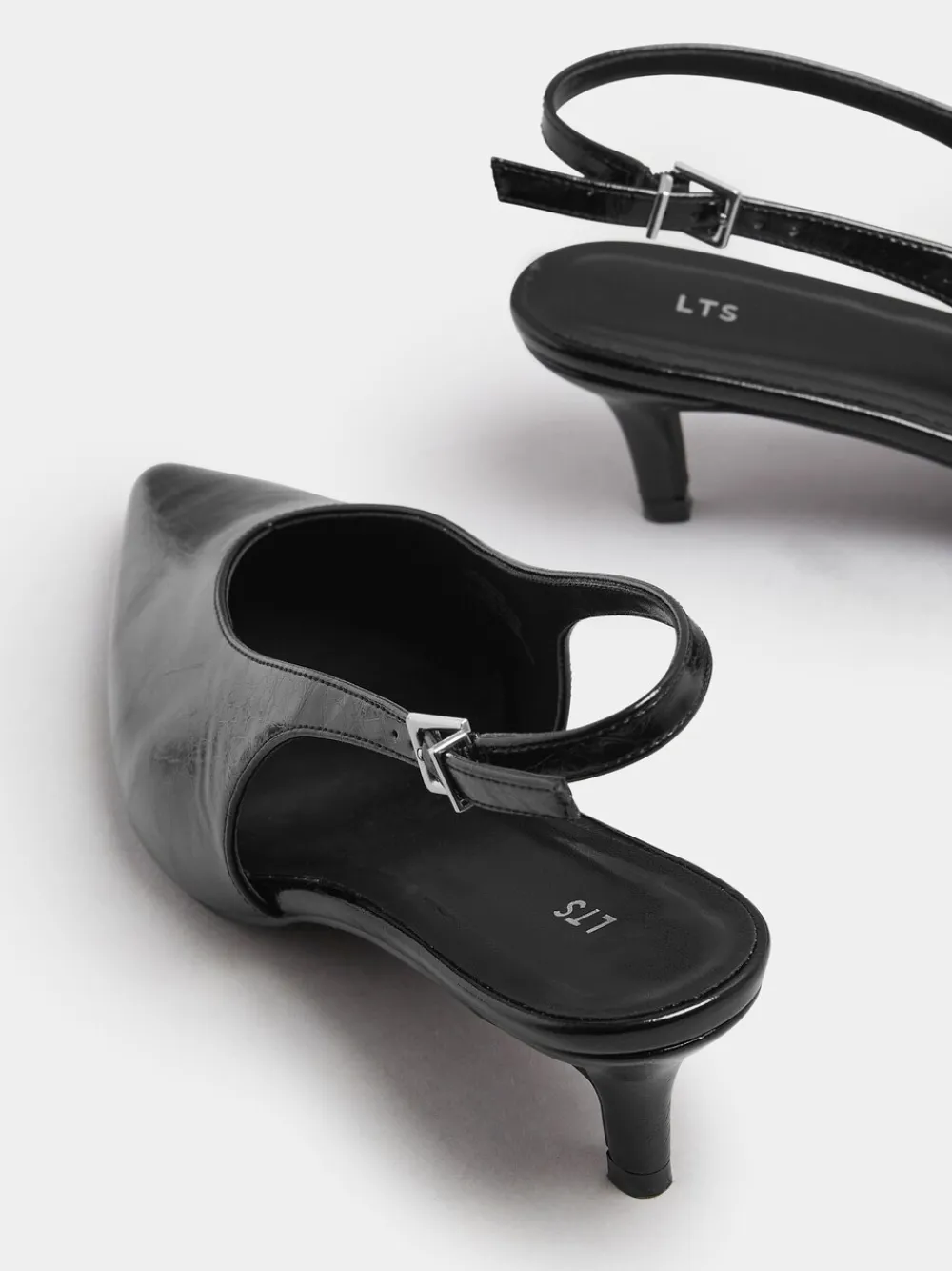 Long Tall Sally V Cut Kitten Slingback Heel Shoes Black