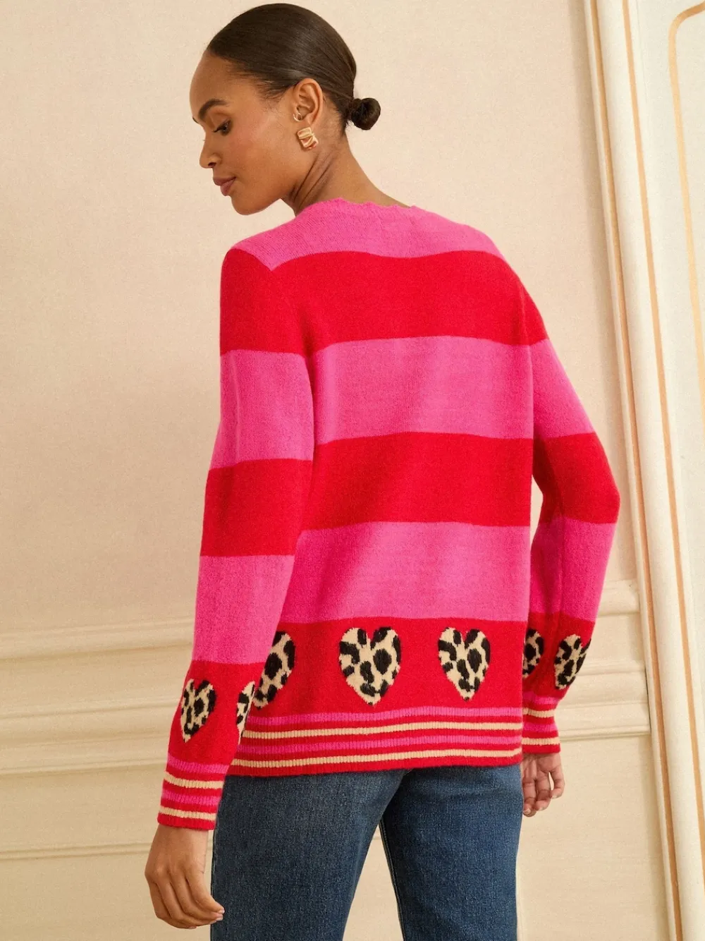 Love & Roses Animal Heart Jumper Pink and Red Stripe Outlet