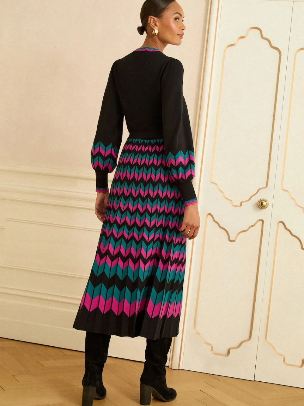 Love & Roses Black Multi Chevron Scallop Knitted Midi Dress Clearance