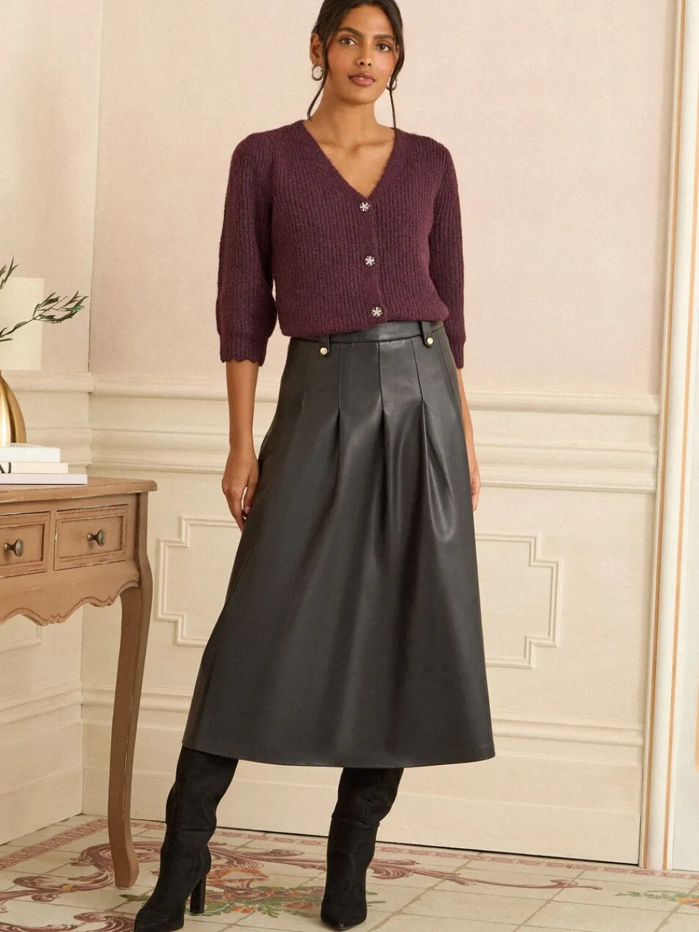 Love & Roses Black Tab Detail Fit and Flare Faux Leather Midi Skirt Best