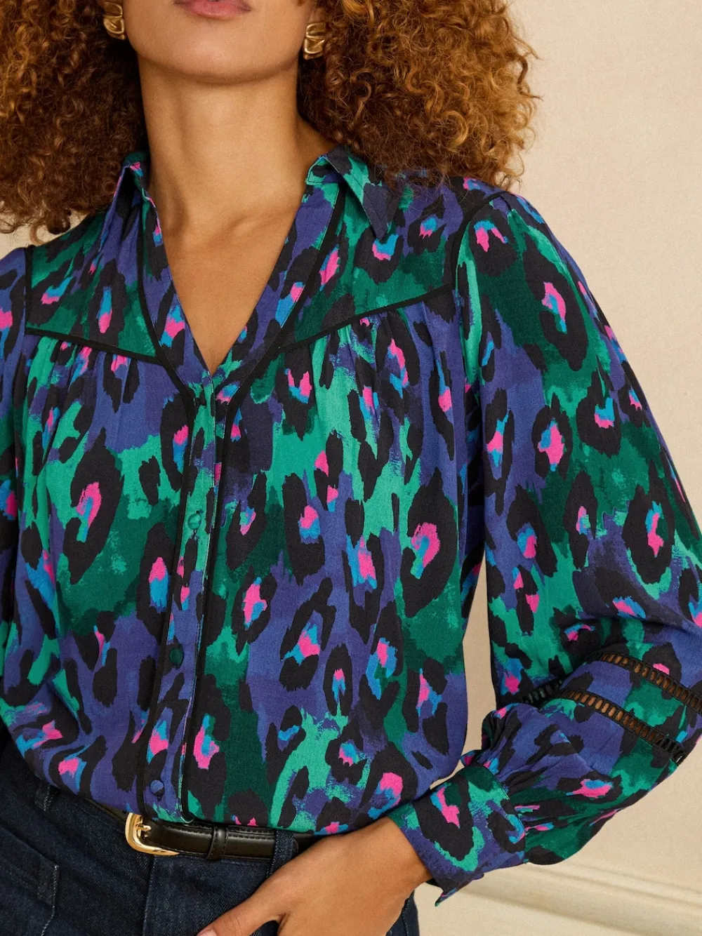 Love & Roses Button Through Long Sleeve Shirt Blue Animal Sale