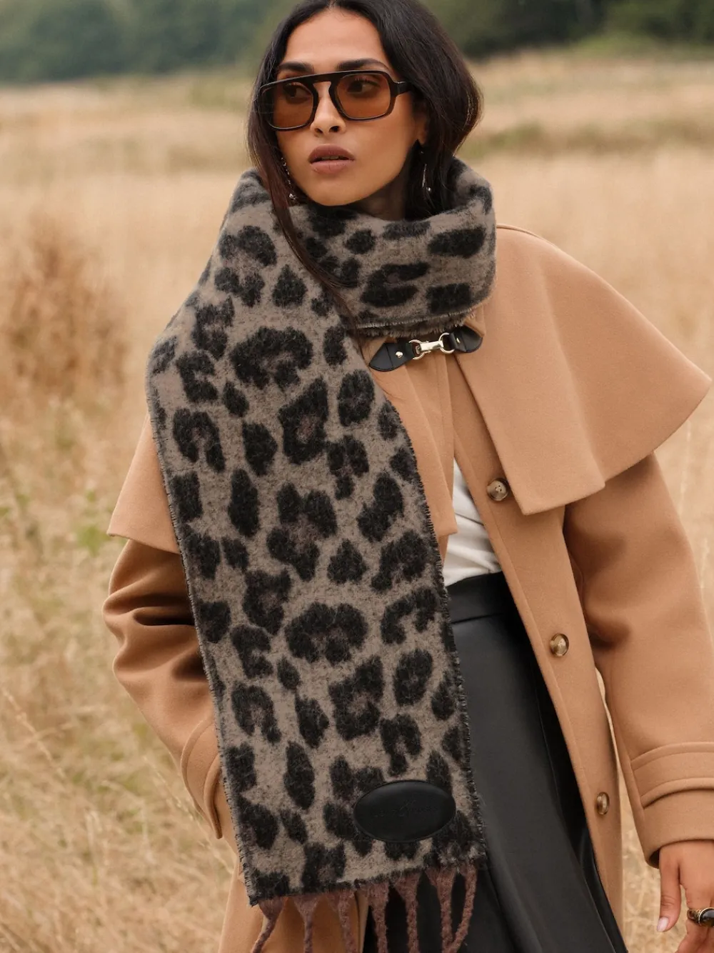 Love & Roses Dark Leopard Print Brushed Scarf Hot