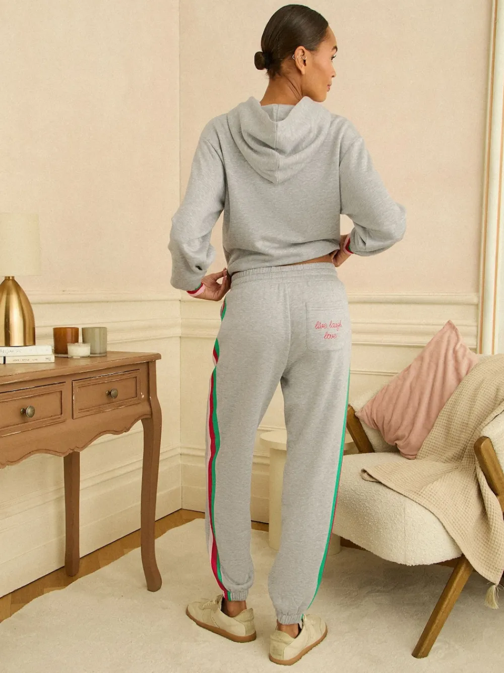 Love & Roses Jersey Loungewear Bottoms Grey Rainbow Tipped New
