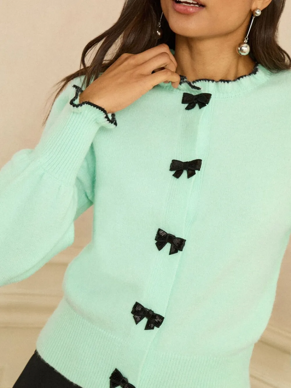 Love & Roses Mint Green Bow Detail Knitted Jumper Outlet