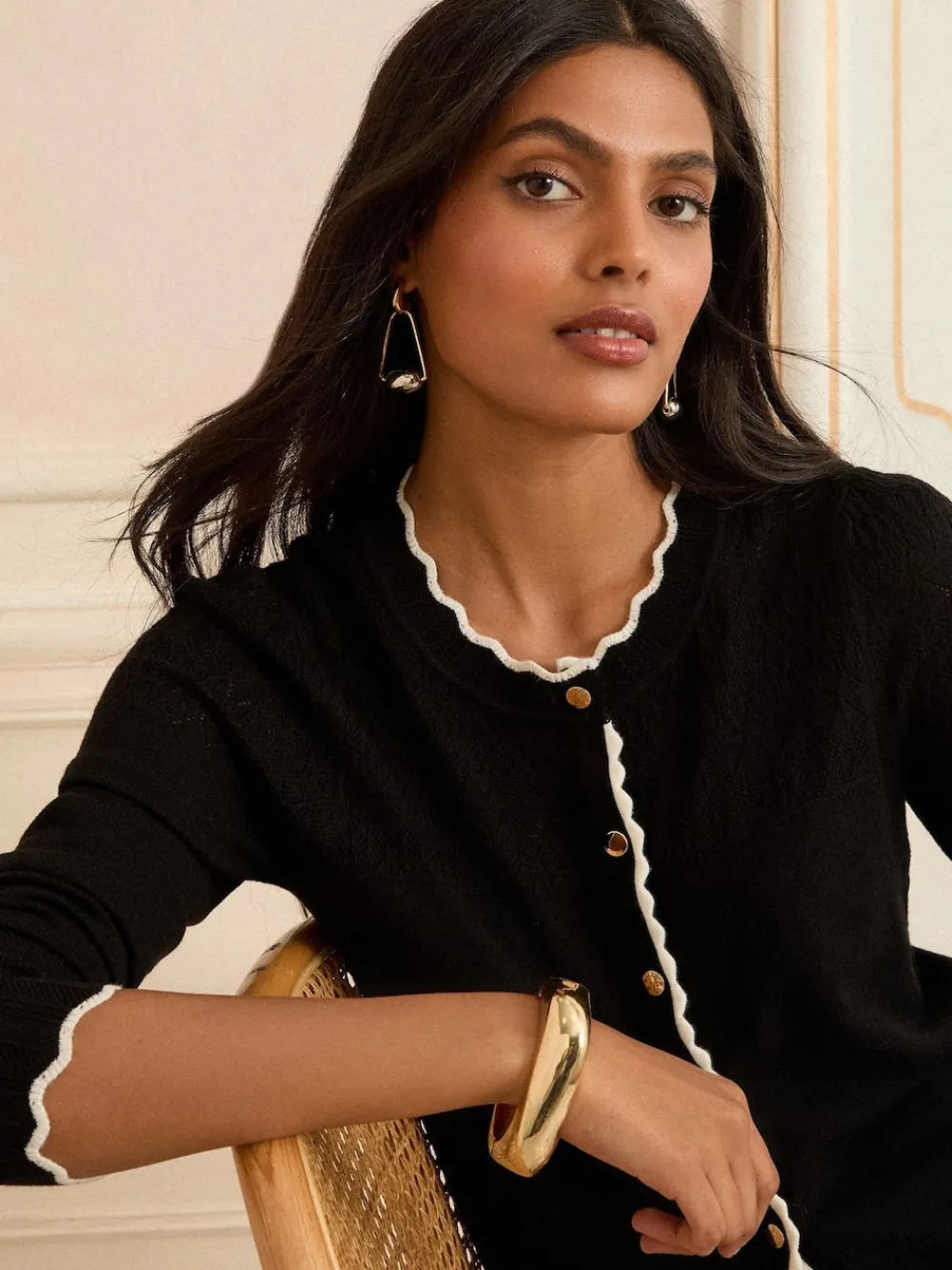 Love & Roses Petite Knitted Cardigan Black Tipped Scallop Hot