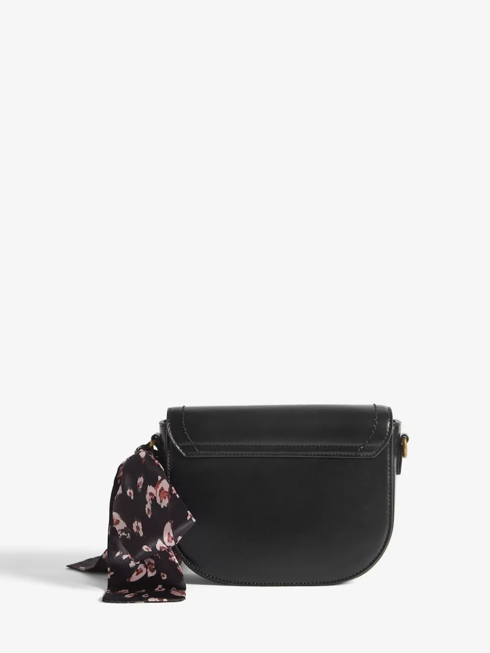 Faux Suede Saddle Cross-body Bag featuring: printed scarf charm, lock and key charms, adjustable cross-body strap. The must-have bag for autumn. Height 17cm Width 22cm Depth 7.5cm Main 100% Polyester with PU coating. Lining 100% Polyester. Strap 100% Polyester with PU coating.