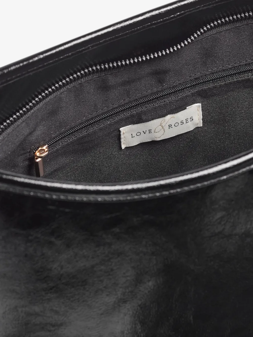 Mixed Material Slouchy Tote Bag featuring: faux leather and faux suede material, slouchy shape, Love & Roses branding, adjustable strap. Perfect for work or school Height 30cm Width 34cm Depth 13.5cm Main 100% Polyester with PU coating. Lining 100% Polyester. Outer 96% Polyester, 4% Elastane.