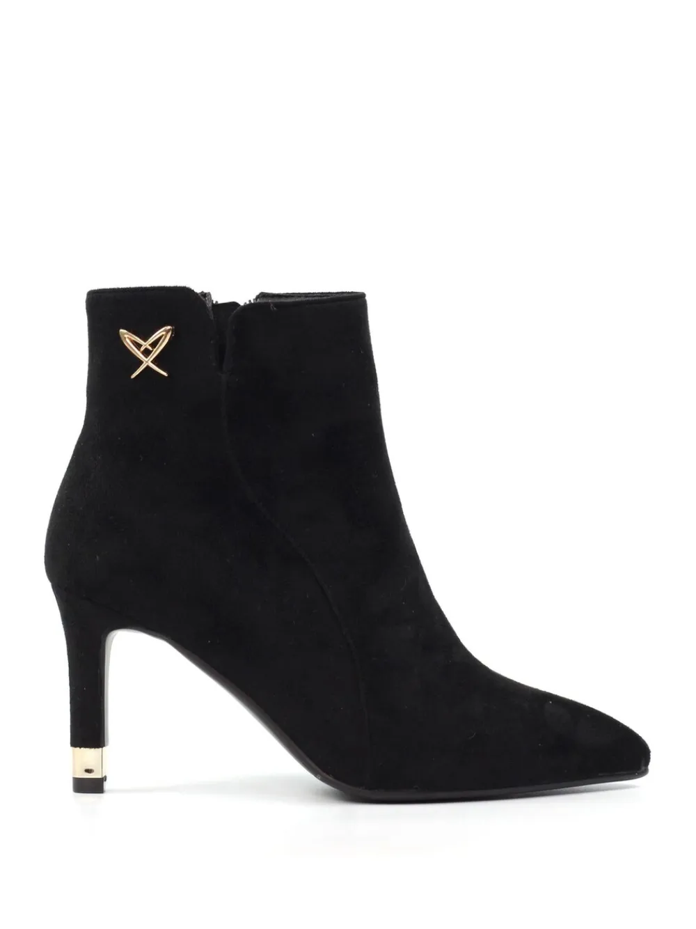 A showstopping choice, the Sadie boots are designed to impress. The sleek upper, combined with a dramatic stiletto heel and zip fastening, makes it a standout piece. The luxurious metallic heart emblem and heel insert ensure shine with every step. Upper – 100% Other fibres, Lining. and Sock – 100% Other fibres. Sole – 100% Rubber.