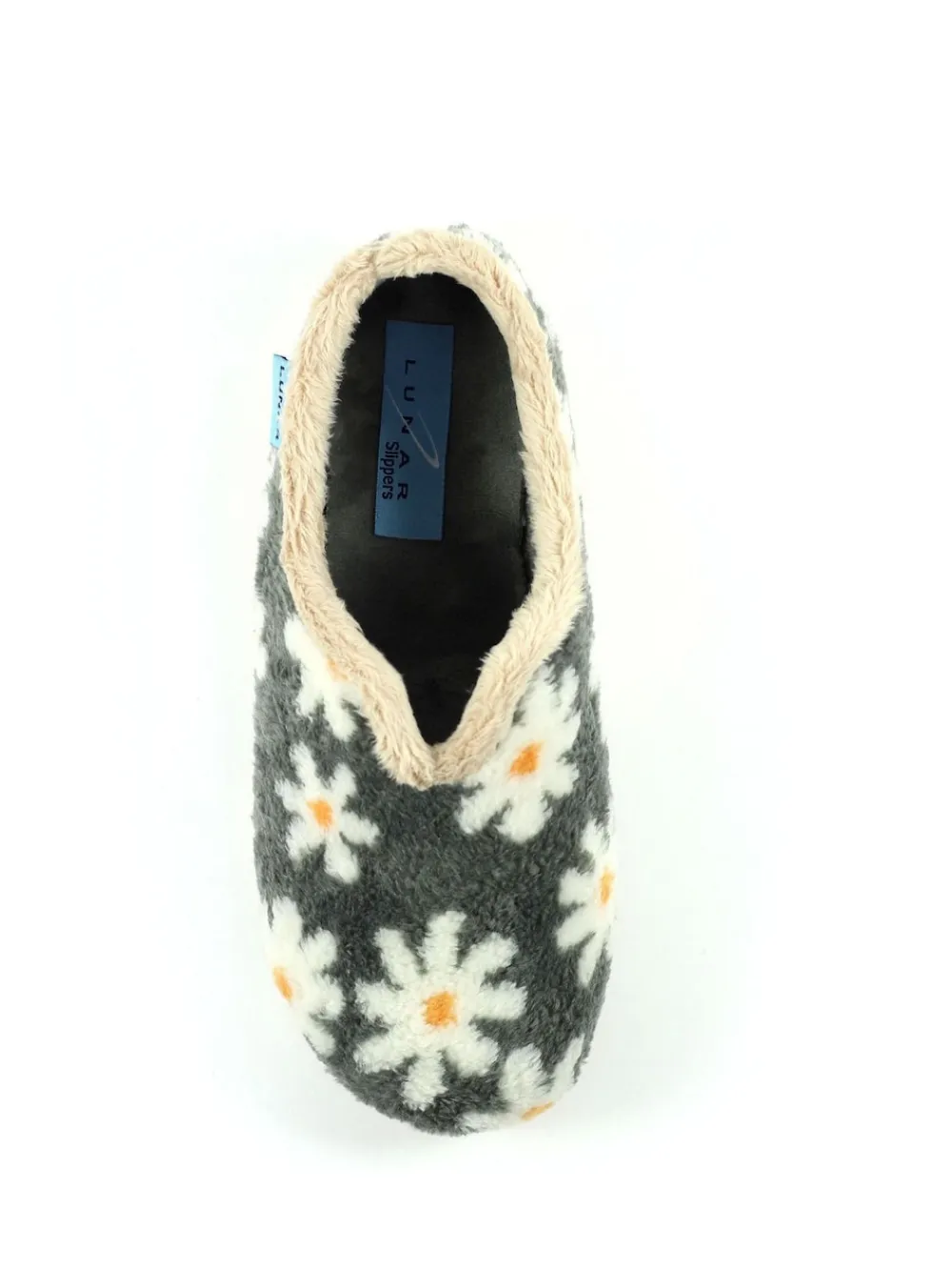 Stay cosy all day in this fabulous daisy patterned, v-cut slippers. The random daisy patterned material creates an eye-catching design and is partnered with a hardwearing sole that can be used outdoors perfect for those trips into the garden! Upper – 100% Textile, Lining. and Sock – 100% Textile. Sole – 100% Rubber.