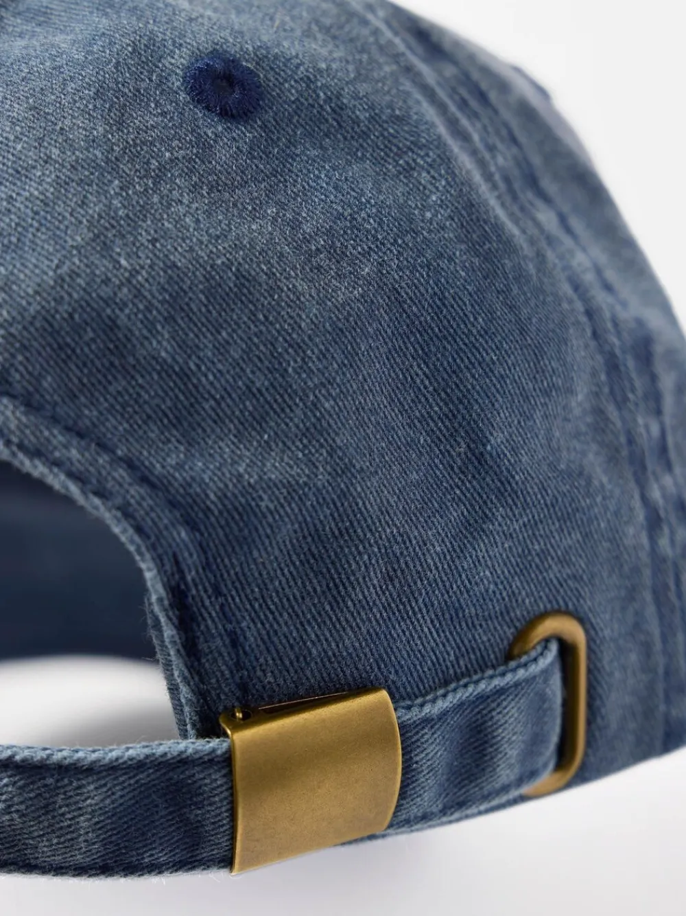 Blue washed denim cotton cap featuring an embroidered logo through the front. Wipe clean only. 100% Cotton.