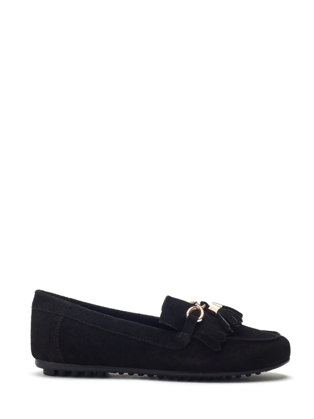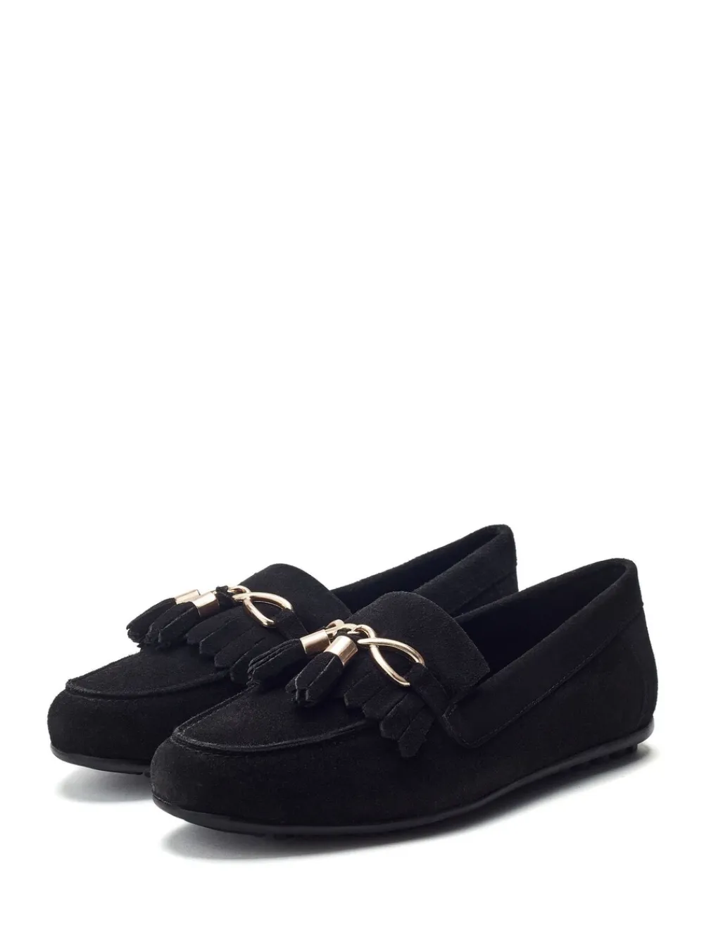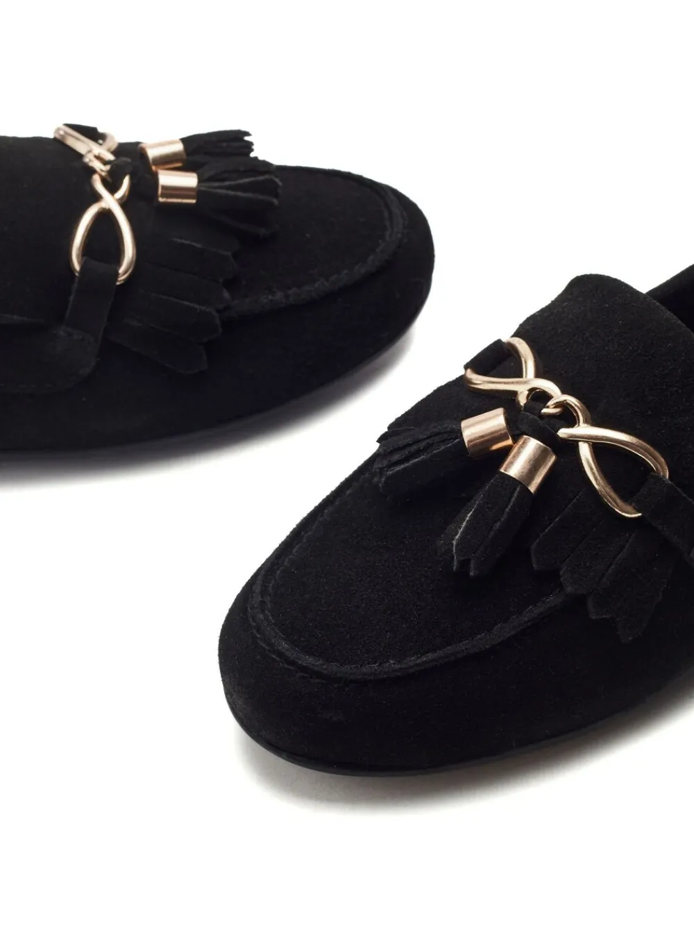 Moda in Pelle Essana Chain And Tassel Detail Moccasins Black New