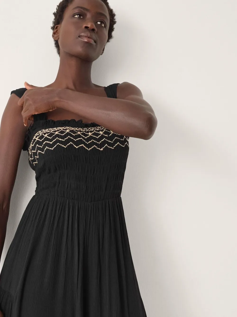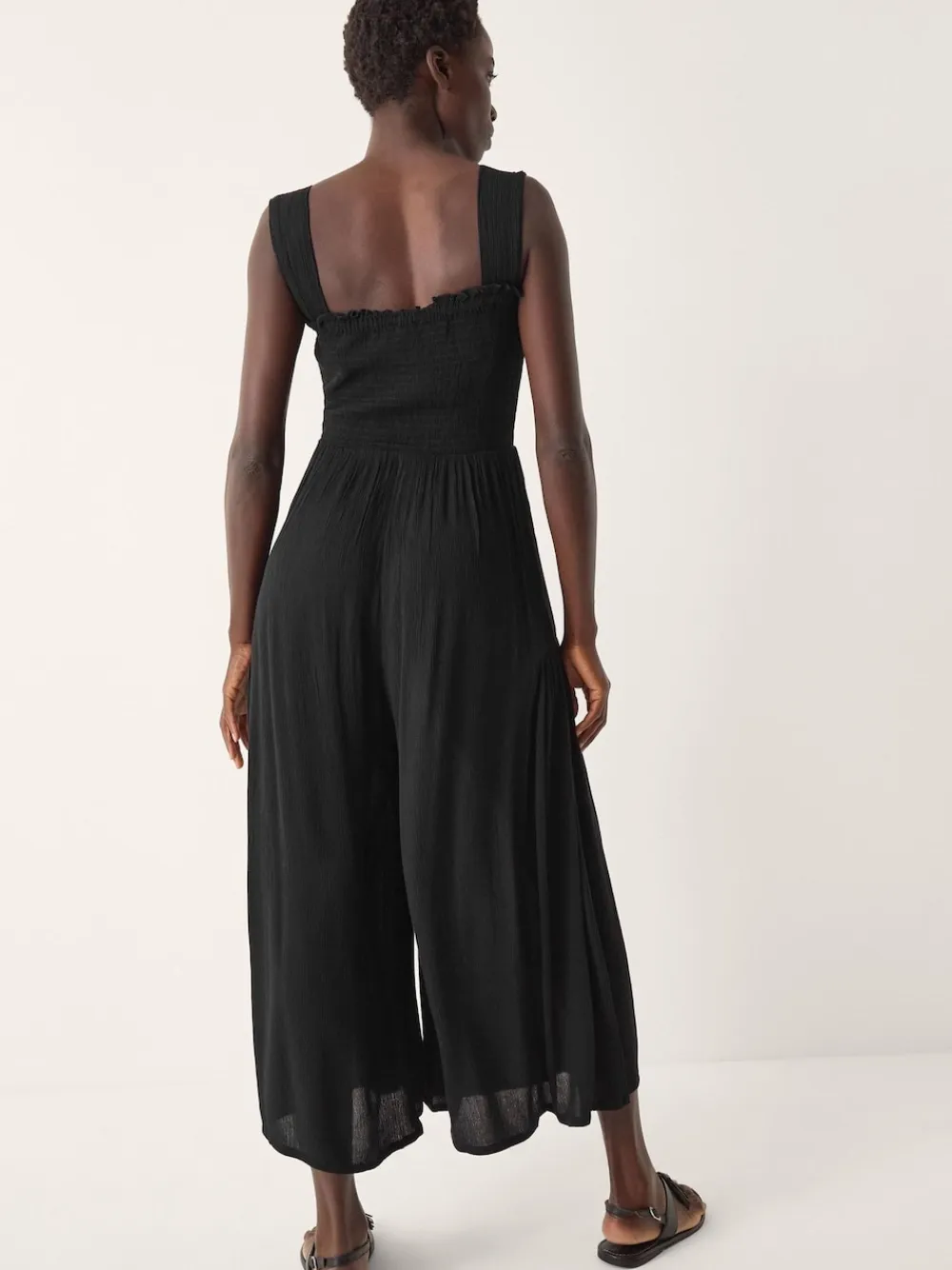 Something different from your classic LBD. Featuring embroidered details on the smocked bodice, this jumpsuit is an elevated essential everyone needs in their wardrobe. Crafted from a lightweight, flowy material, you can dress it down for sunny getaways or jazz it up for birthday parties. Machine washable. 100% Viscose.