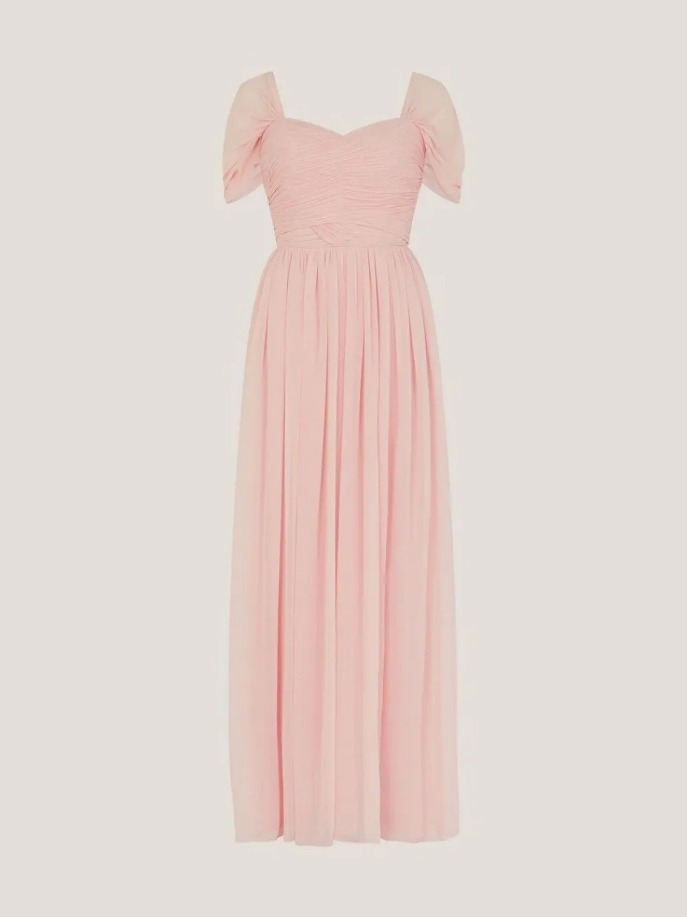 The perfect dress for “I do’s”. Timelessly stunning, this bridesmaid dress is imbued with subtle details and simple elegance, creating a silhouette that complements any bridal gown. Designed with delicate sleeves that drape off the shoulder and a hem that floats effortlessly to the floor, the fitted bodice boasts a sweetheart neckline and wrapped, pleated texture to finish. Machine washable. Main 100% Polyester. Lining 100% Polyester.