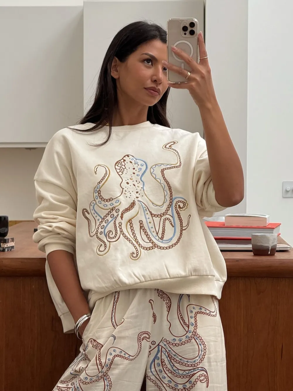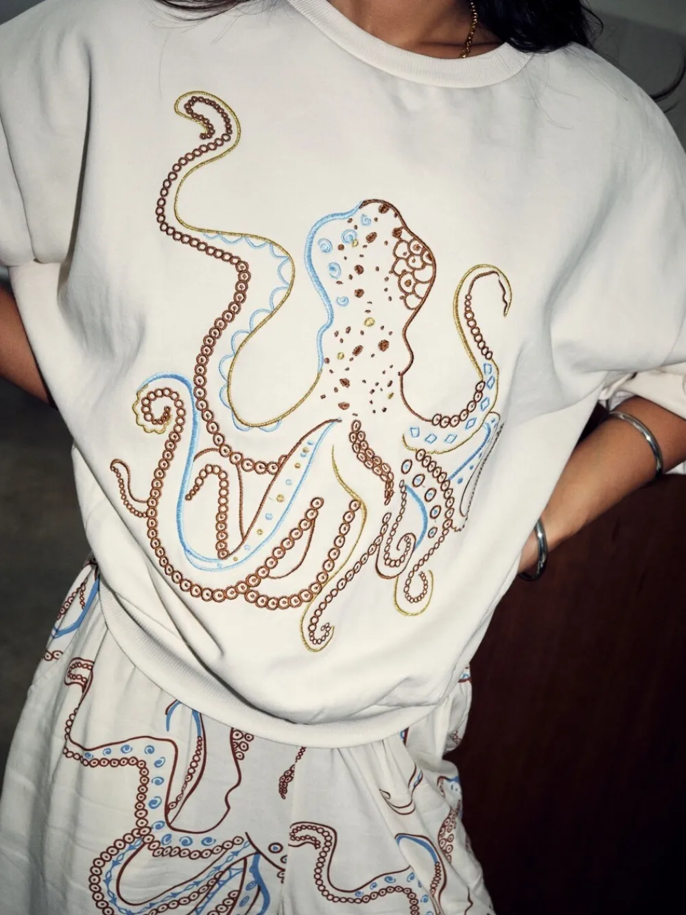 Never Fully Dressed Cream Octopus Cotton Brushed Sweatshirt Discount