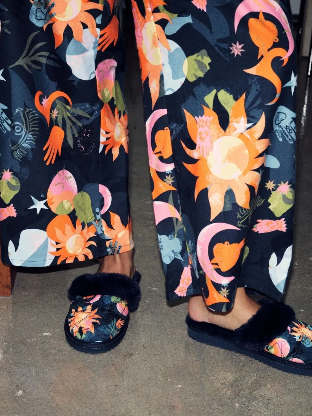 Never Fully Dressed Multi Navy Quilted Faux Fur Lined Mule Slippers Hot