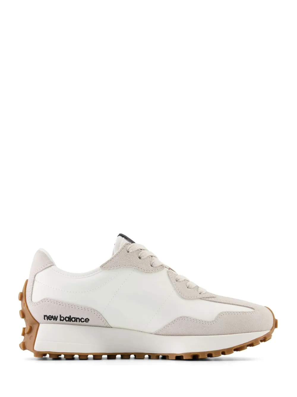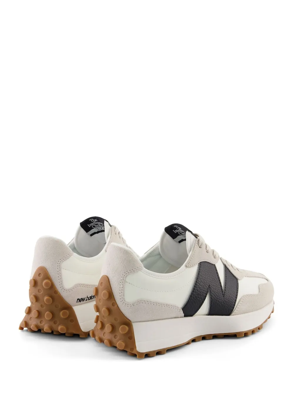 The 327 sheds new light on the 70s as a time of innovation by boldly reshaping classic design elements with a thoroughly contemporary outlook. With an angular reworking of the tried-and-true wedge silhouette, outsize, asymmetrically applied N branding, and wraparound, trail-inspired lug outsole, the 327 provides nothing less than a complete reimagination of our running heritage. Upper – Leather, Textile, Lining and Sock – Textile, Sole – Other Materials.