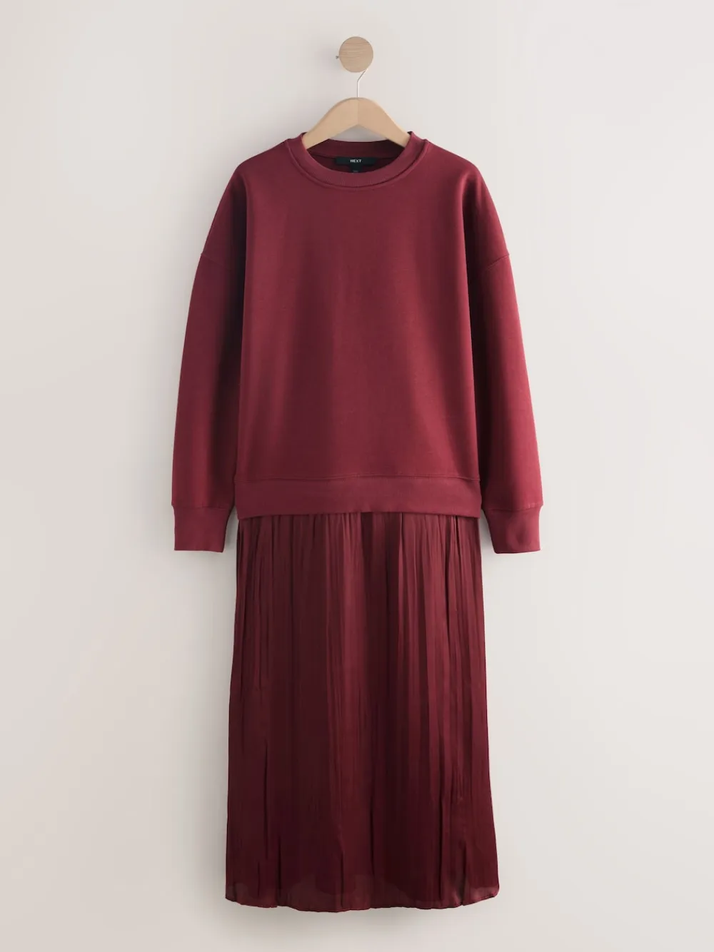 Next 2-In-1 Sweatshirt With Satin Midi Skirt Burgundy Red