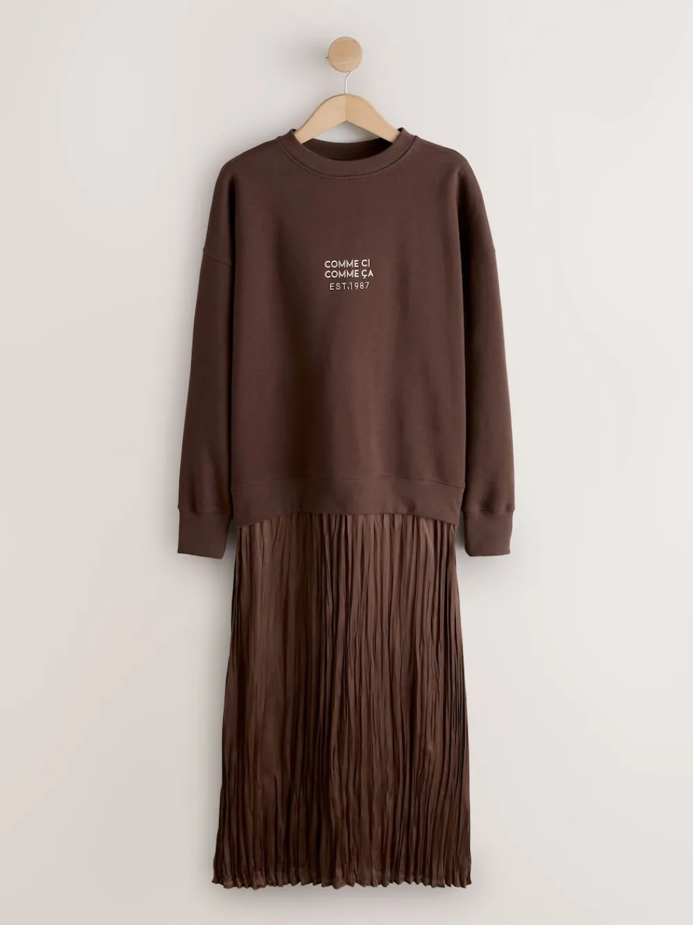 Next 2-In-1 Sweatshirt With Satin Midi Skirt Chocolate Brown Embroidery Outlet
