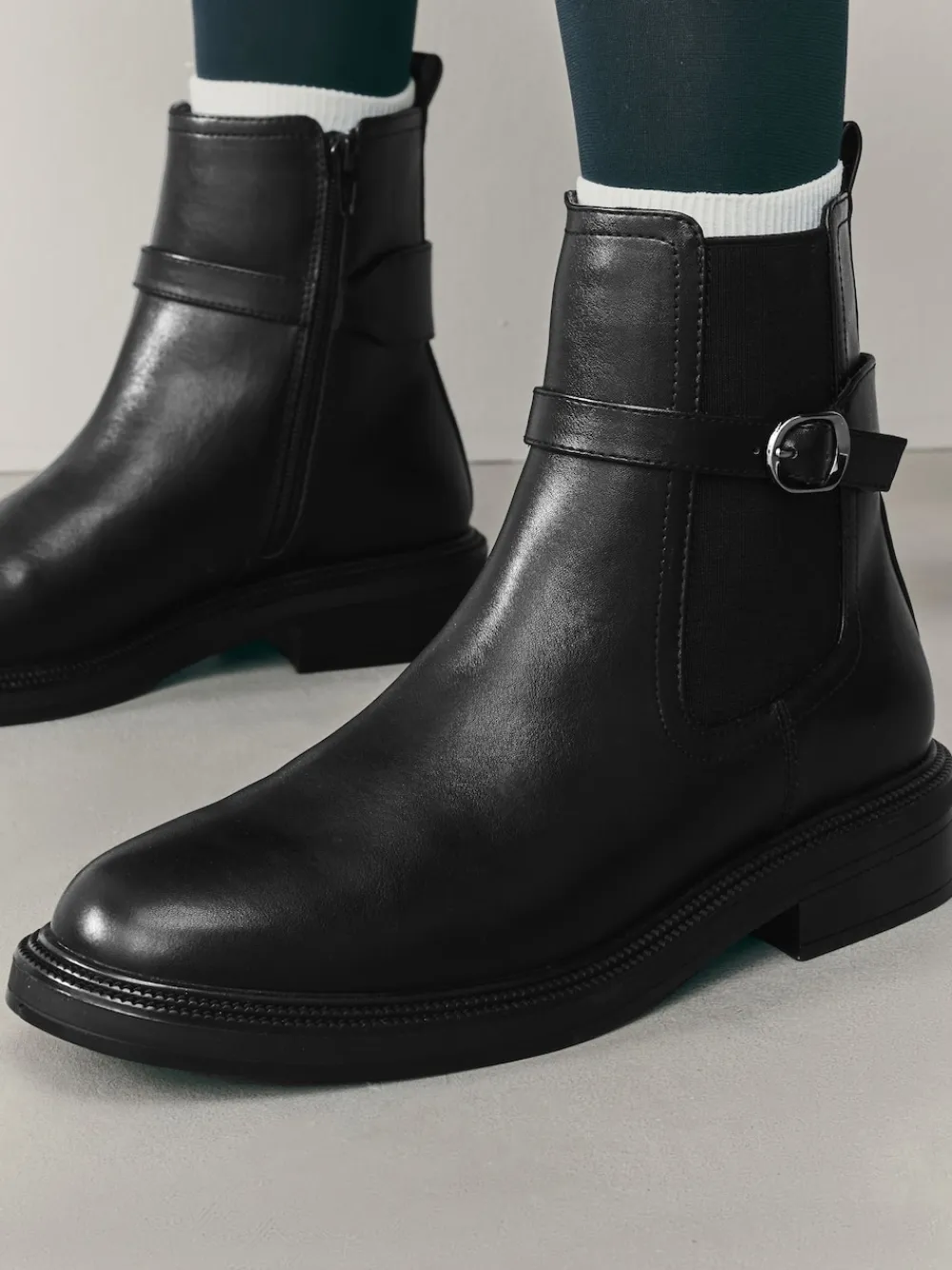 This pair of Chelsea boots offers a sophisticated take on a timeless classic. The design is elevated by buckle strap detailing, while the practical side zip and pull-on tab ensure a comfortable and seamless fit for any occasion. Buckle strap detailing Pull on tab Inside zip fastening Elasticated side gussets Forever Comfort® cushioned footbed Upper – Other Materials, Textile, Lining & Sock – Other Materials, Textile, Sole – Other Materials.