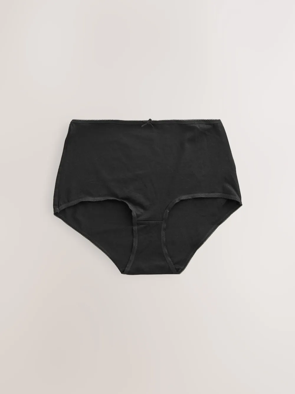 Our bestselling everyday knickers. Naturally breathable cotton for all day comfort. Comes in a range of pack size, shape and colour to suit all customers. Machine washable. 5 x Knickers Main 95% Cotton, 5% Elastane. Gusset 100% Cotton. Items with the curve logo are available in sizes 18 and above.